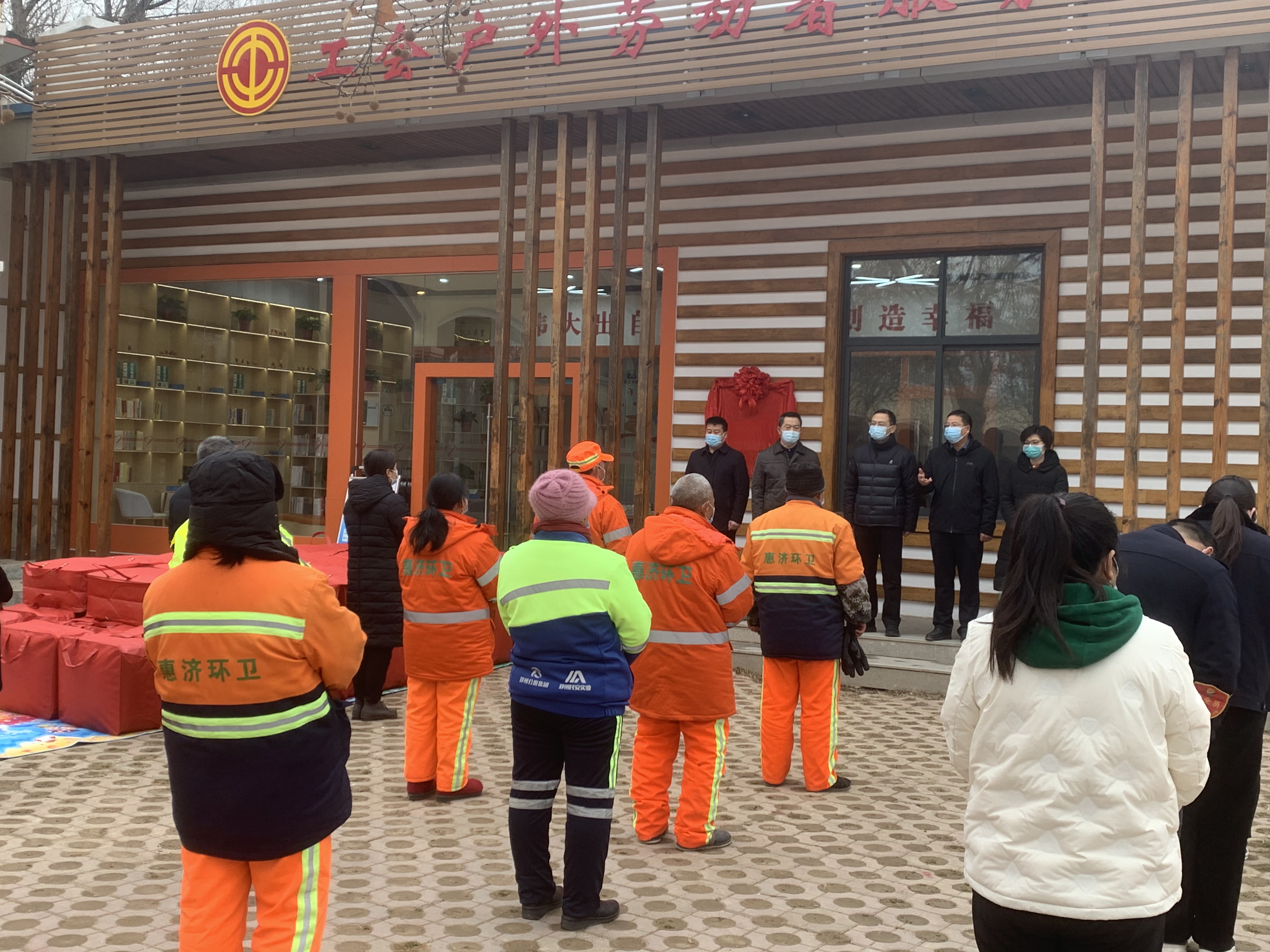 在丰乐农庄爱心驿站,赵志新书记参加了惠济区工会户外劳动者服务站点揭牌仪式,介绍了爱心驿站的作用和功能,希望各级工会要充分发挥户外劳动者爱心驿站冷可取暖、热可纳凉、渴可喝水等服务功能,建好职工之家。面对公交车司机、环卫工人和丰乐农庄一线职工,向他们不怕困难、坚守岗位、舍小家为大家的精神表达深深的敬意,叮嘱他们注意防寒保暖,并为他们送去保暖慰问品。
