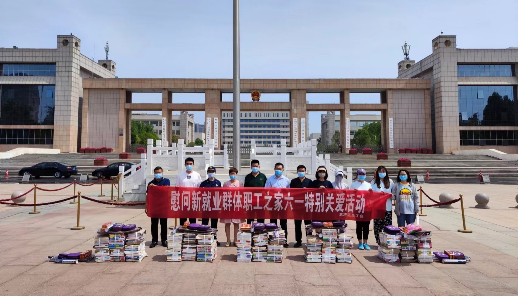 5月27日,惠济区总工会在大河广场开展了“六一特别关爱活动”,为辖区的迎宾社区、月湖社区、天河社区、丰乐农庄和大桥石化五个站点分别赠送价值5000元的儿童和青少年图书,并为丰乐农庄、一达民安、大桥石化、消防大队、迎宾社区、月湖社区和天河社区各赠送2副羽毛球拍和2副乒乓球拍。