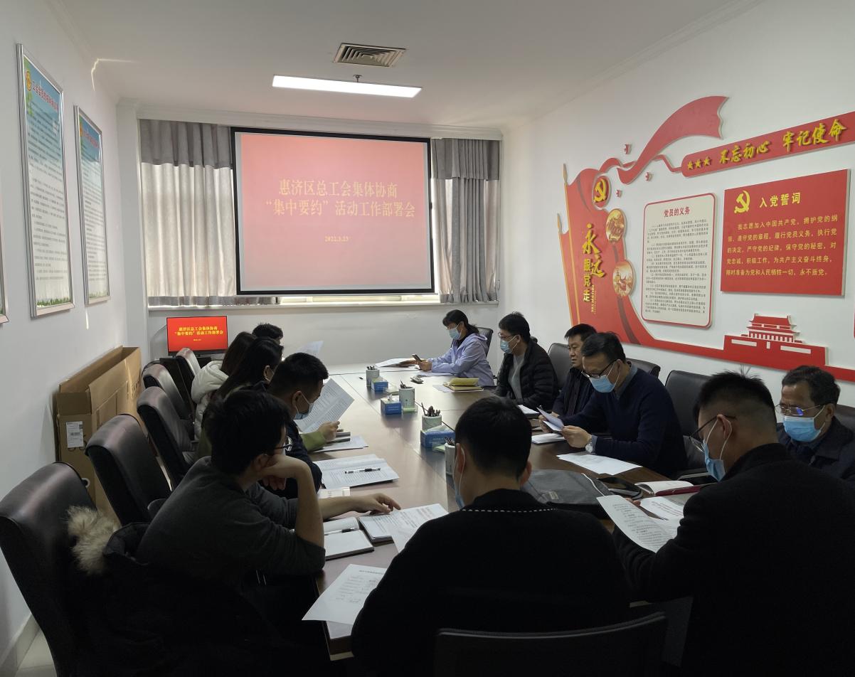 为深入贯彻党的十九届六中全会精神,全面实施《河南省企业工资集体协商条例》,充分发挥集体协商制度在协调劳动关系中的基础性作用,保障职工合法权益,助力企业健康发展。根据省市相关部门要求,推动各类企业尤其是新就业形态平台企业建立健全集体协商和集体合同制度,畅通职工诉求表达渠道,防范和化解劳动关系领域各类风险。惠济区总工会于2022年3月23日组织召开集体协商“集中邀约”活动工作部署会议,动员八个镇(街道)工会联合会,三名集体协商指导员,严格按照省总、市总文件要求,开展集体协商工作。区总工会副主席邹玉锦对2021年集体协商工作进行了总结,并对2022年集体协商工作进行了具体安排,要求各镇(街道)工会联合会、三名集体协商指导员结合企业实际情况,加强与企业及职工的沟通协商,维护好职工合法权益,确保集体协商工作稳步推进。