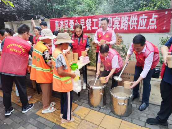 为贯彻落实省总重点实施的“五大行动”和突出办好的“十件实事”工作要求,发挥工会枢纽型社会组织的独特优势。8月21日早上,惠济区总工会联合迎宾路街道郑州欧安乐龄护理院开展新就业形态劳动者免费爱心早餐活动。