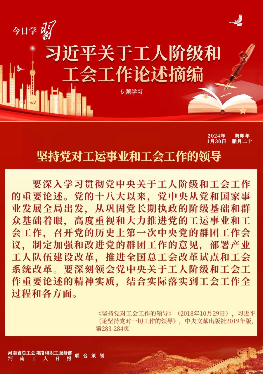 【今日学习】习近平关于工人阶级和工会工作论述摘编30