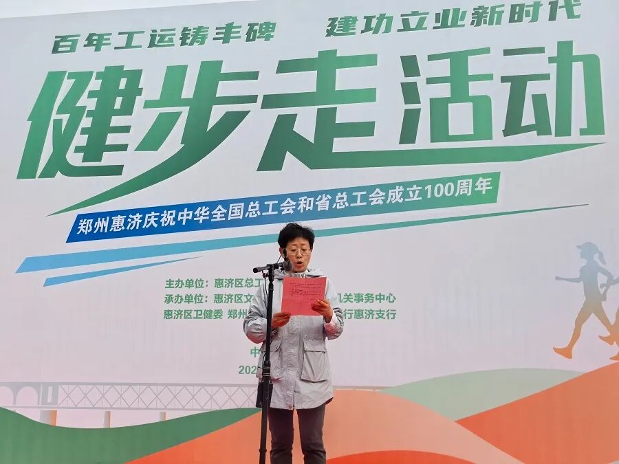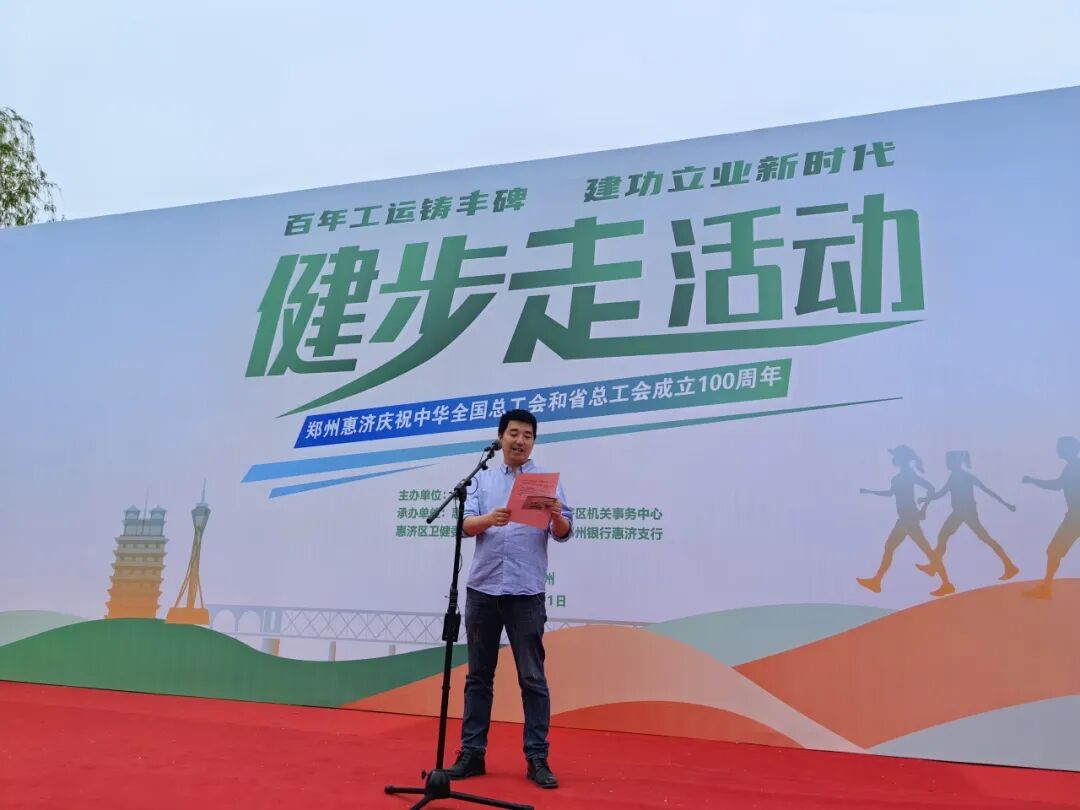 为庆祝中华全国总工会、河南省总工会成立100周年,丰富职工精神文化生活,引导广大职工树立健康的生活理念,4月11日,由惠济区总工会主办,区文化旅游局、区机关事务中心、区卫健委、郑州黄河滩地公园、郑州银行惠济支行承办的“百年工运铸丰碑,建功立业新时代”惠济区职工健步走活动在黄河滩地公园正式启动。