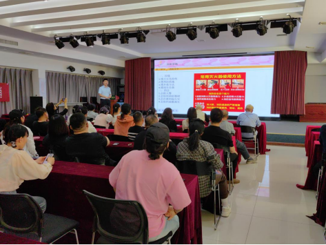 在消防技能培训环节,通过演示图分步讲解灭火器"提、拔、握、压"四步操作法,针对干花、包装纸箱等易燃物特性,重点培训油类火灾与固体火灾处置区别。