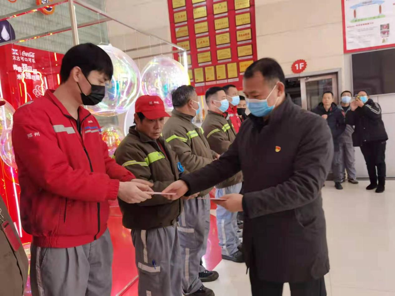 郭书记与另外一组工作人员慰问了郑州太古可口可乐饮料有限公司等4家企业。在可口可乐郭书记认真听取了企业工会负责人对企业工会工作特别是职工关怀工作情况的汇报,和各位困难职工进行了亲切的交流。郭书记希望企业能够充分发挥党组织、工会和基层职工群众的紧密关系,关怀了解基层民情,关爱基层职工。郭书记亲手将慰问物资和慰问金递到了每位困难职工的手中,并提前送上了节日的祝福。