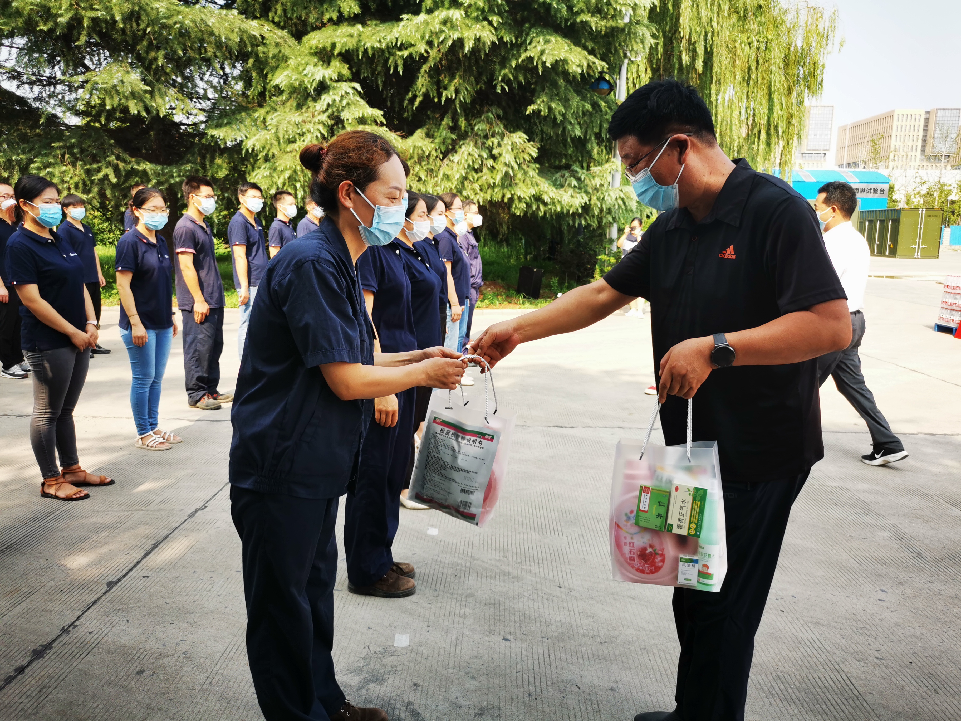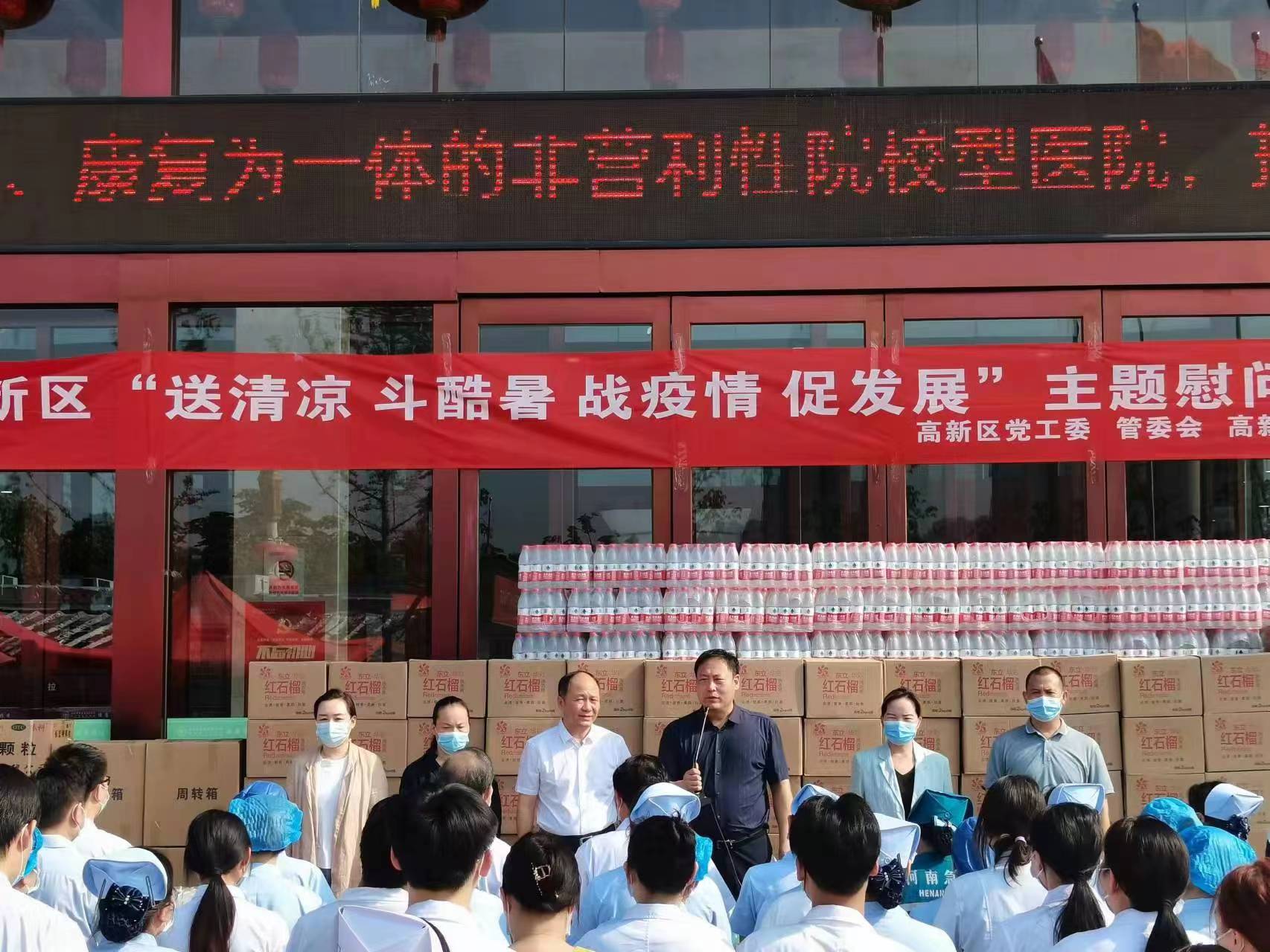 此次慰问对象主要有四类,一是以郑州佛光发电设备股份有限公司为代表的8家重点企业和项目的一线工人,二是以高新环保、高新分局巡特大队、高新区消防救援大队、交警十一支队为代表的7家从事高温作业的特殊行业一线职工,三是以郑州西区中医院为代表的3家疫情防控一线人员,四是以河南云充新能源科技有限公司为代表的9家新业态劳动者。