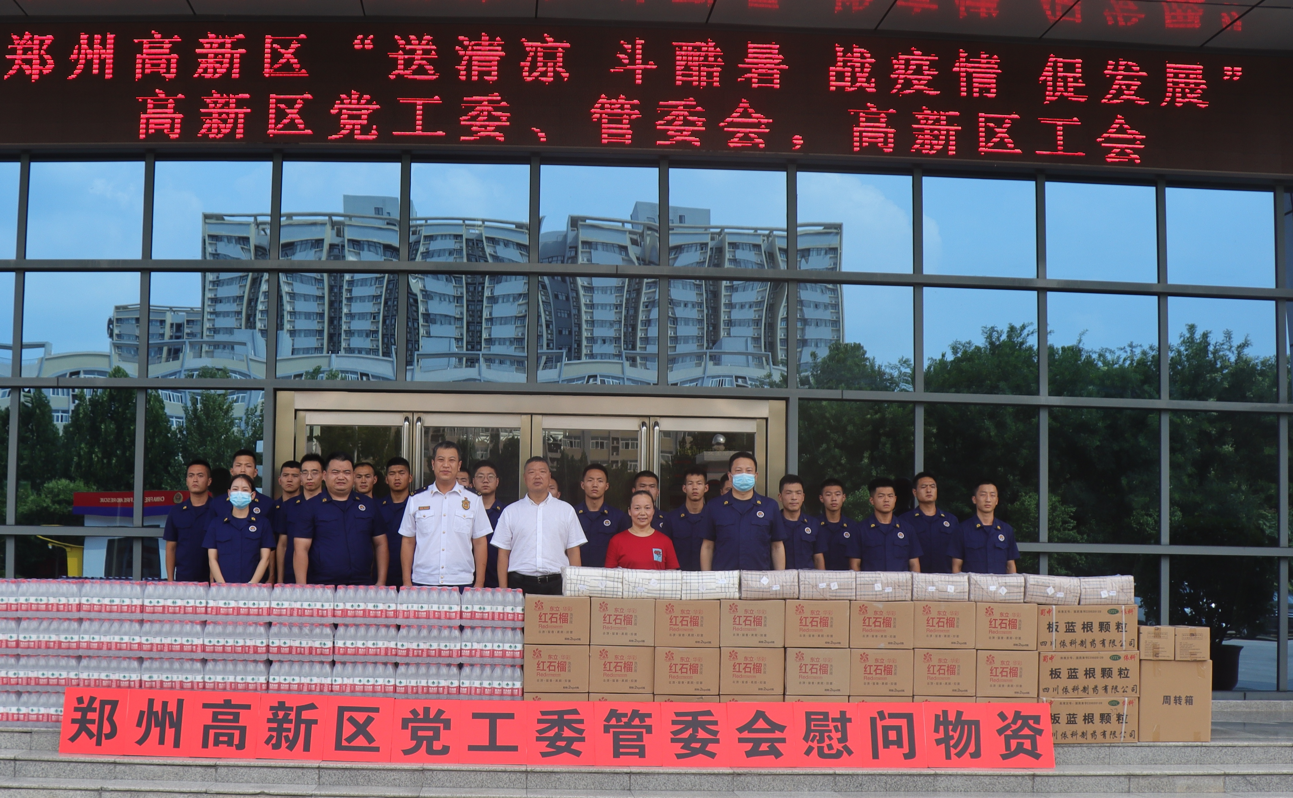 为做好常态化疫情防控形势下的高温作业和高温天气作业劳动保护工作,有效预防和控制职业性中暑事件,降低高温作业和高温天气作业对劳动者身体健康的危害,切实维护广大职工的劳动健康权益,8月2日至3日,由高新区党工委、管委会、人大班子成员、高新区工会组成的慰问组为辖区27家单位的将近1万名职工送去矿泉水、毛巾、香皂、洗衣液、藿香正气水、仁丹、风油精、花露水、板蓝根等价值50余万元的防暑降温物资,为他们送上炎炎夏日里党和政府的关爱和工会“娘家人”的关心。