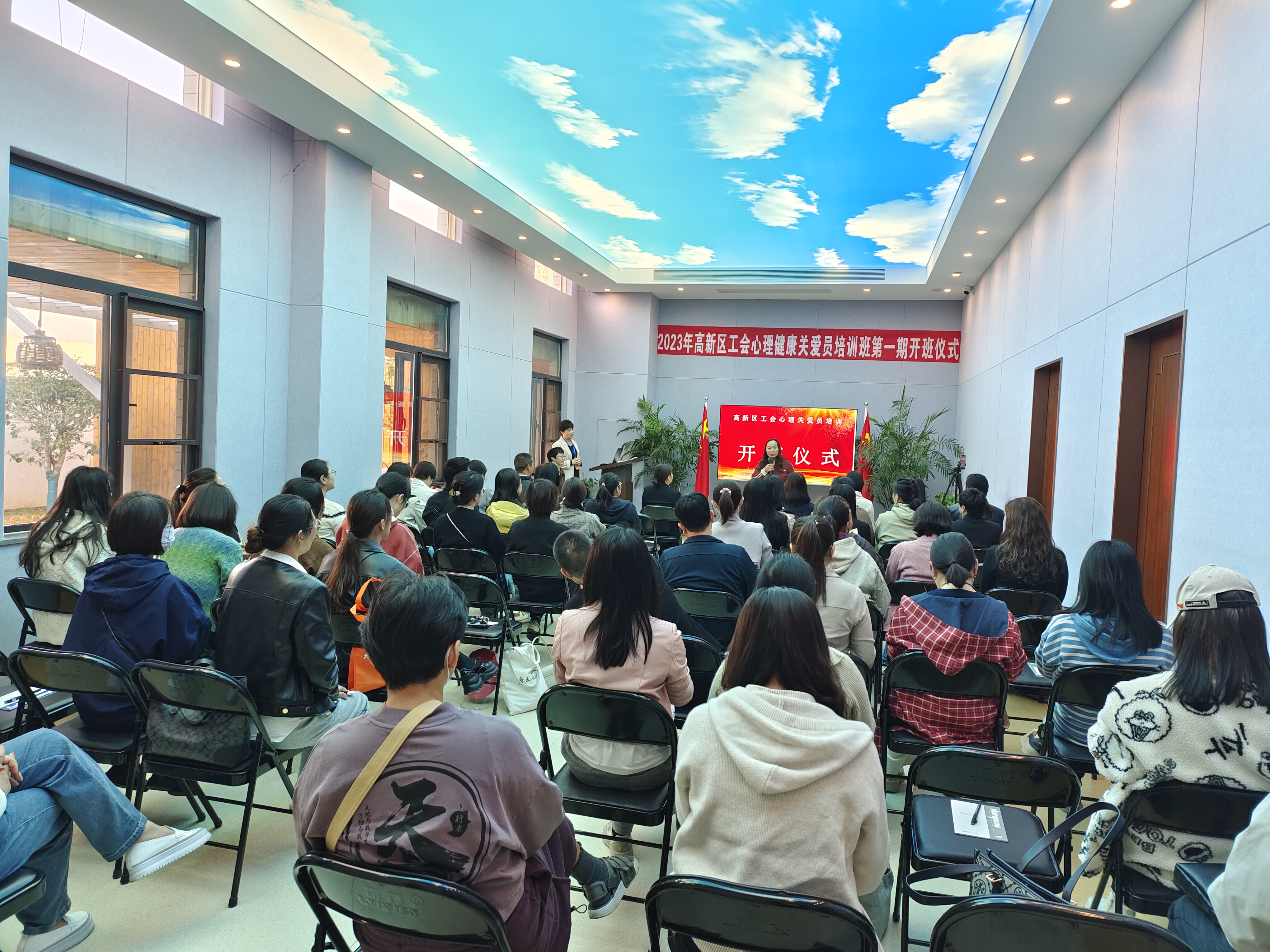 10月20日上午,高新区工会心理健康关爱员培训班第一期正式开班啦!高新区工会心理健康服务中心的教室里,75名学员齐聚一堂,满怀憧憬的期待课程的开始。开班仪式上,高新区工会对学员提出要求,希望学员们珍惜学习机会,认真听讲,坚持学习,掌握心理健康基本常识,学以致用,发挥心理健康关爱员的作用,促进职工心理健康,为和谐社会的发展贡献工会力量。