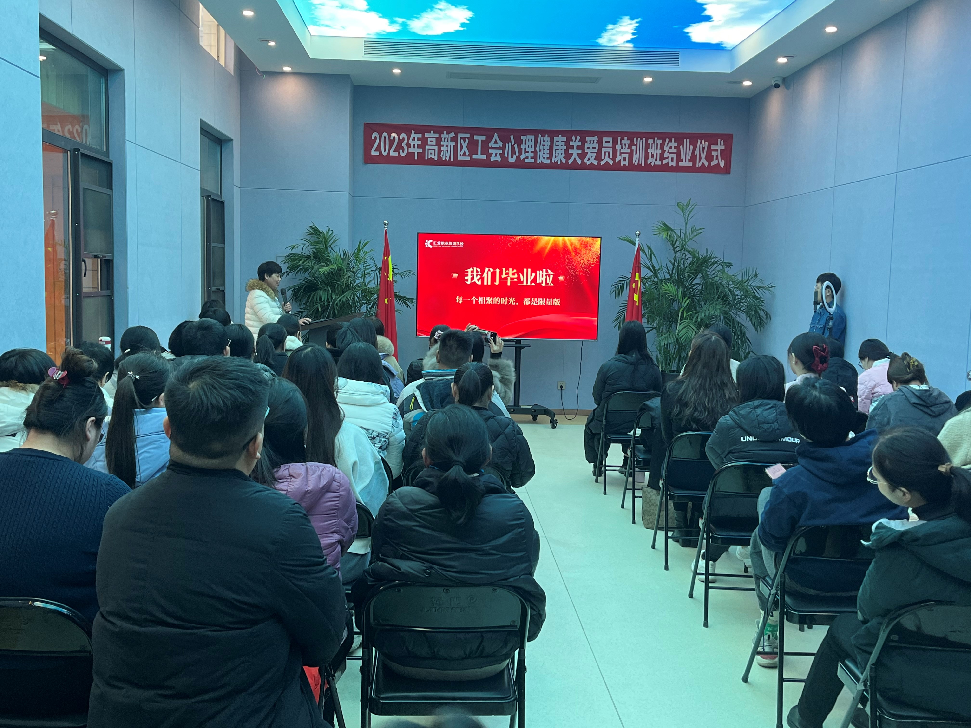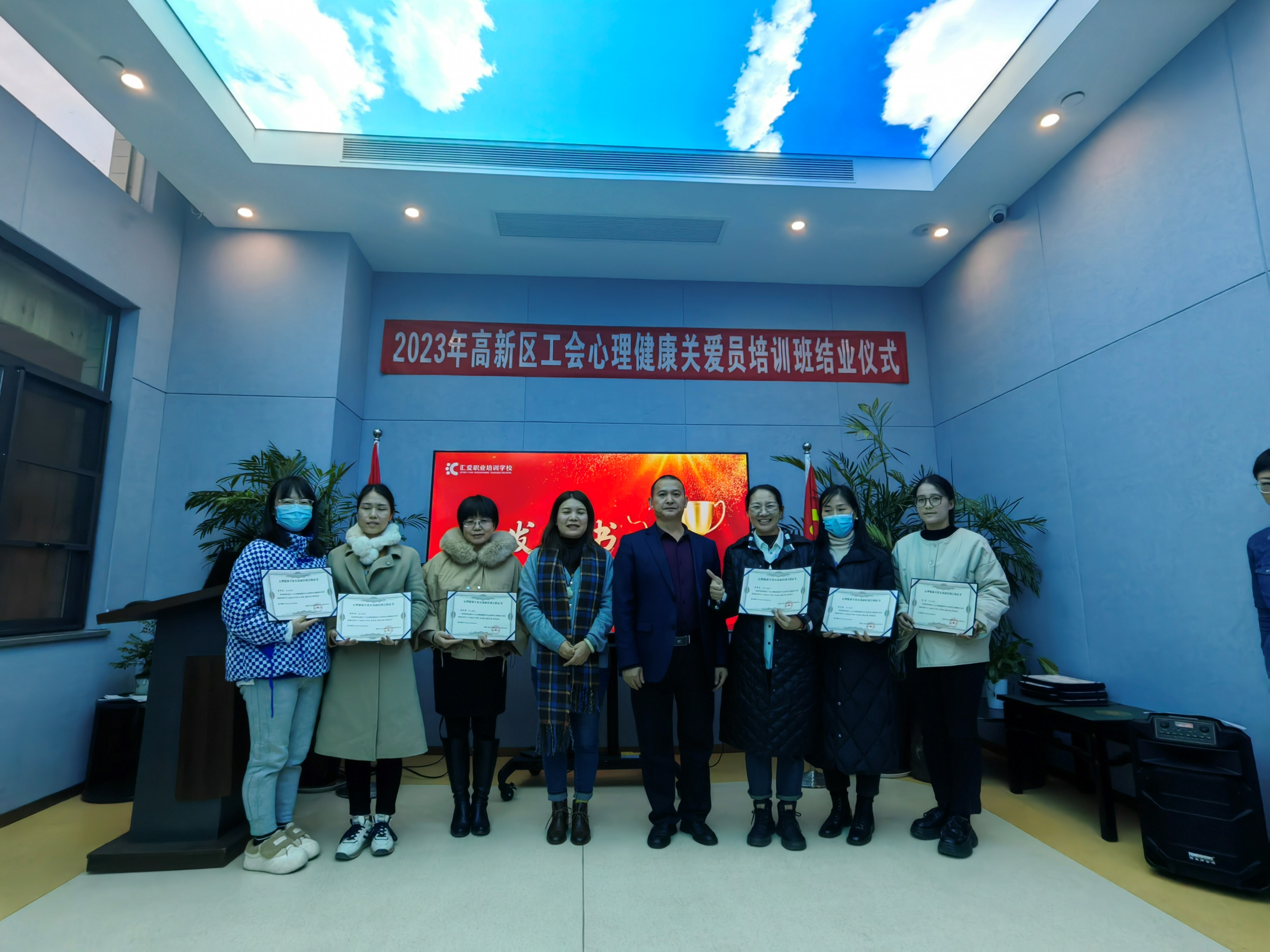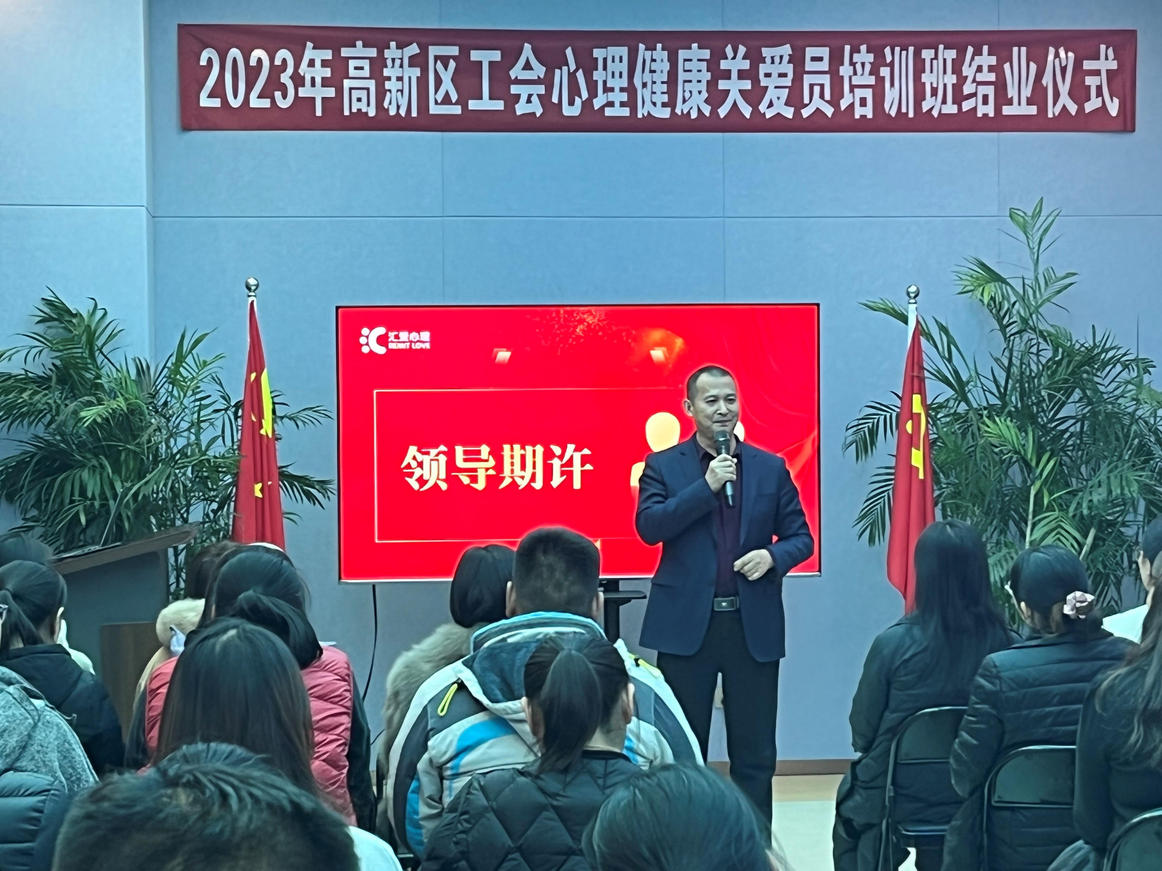 高新区管委会党群工作部郭广立副书记现场对学员们提出殷切期许。鼓励学员不断学习不断提升,在实践中学以致用,发挥心理健康关爱员的作用,促进职工心理健康,为和谐社会的发展贡献工会力量!在仪式最后,高新区总工会分别为116名学员颁发了“心理健康关爱员”证书。