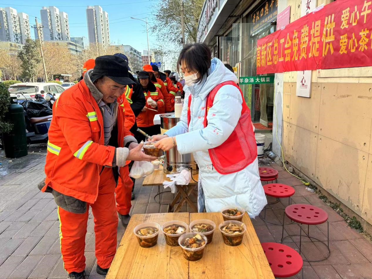 面对近期出现的低温雨雪冰冻天气,高新区总工会积极响应郑州市总工会关于做好严寒天气下职工劳动保护工作的通知精神,全面落实雨雪冰冻灾害防范应对工作,切实维护广大职工尤其是户外劳动者的生命健康权益。12月22日,在中国传统节日冬至当天,结合辖区工会驿站的实际情况,组织开展“迎冬至•送温暖”系列活动。