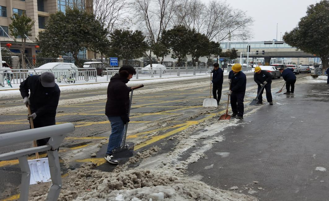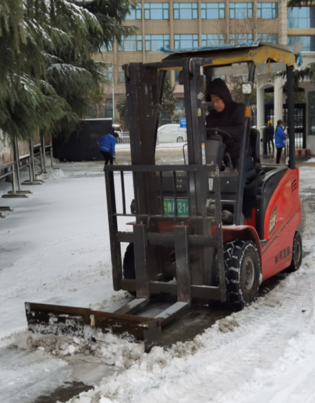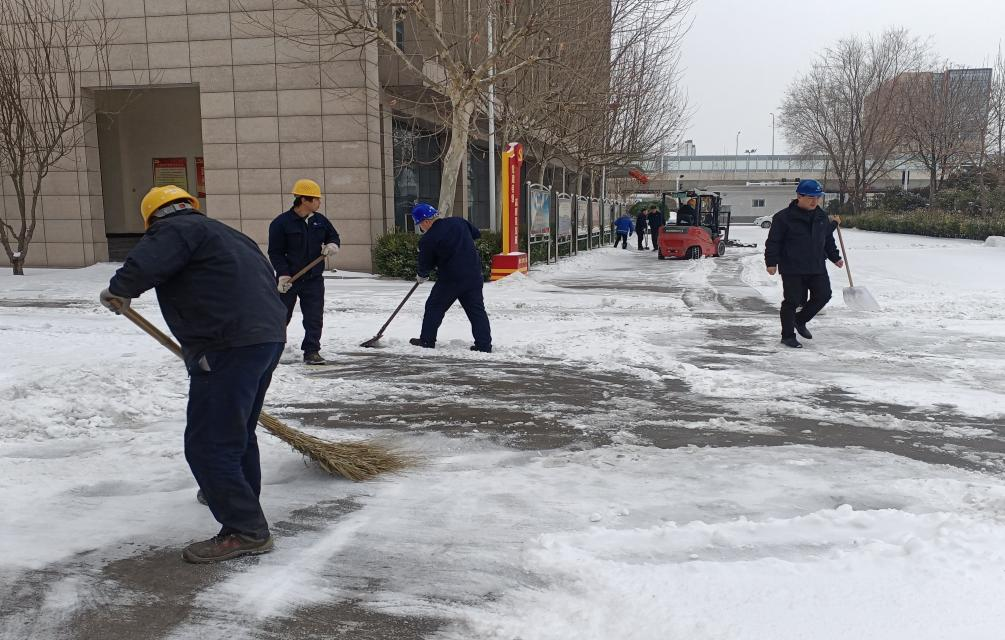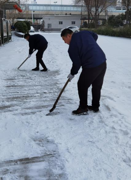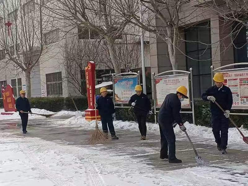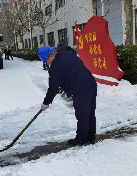 响应号召,率先垂范,你呼我应,带头冲锋。全体党员、职工不畏严寒,团结协作,挥动铁锹、扫帚、铁铲等清理工具,与铲雪车协同配合,分工合作,他们忙碌的身影和亲切的笑脸形成了冬日里一道温暖靓丽的风景线。经过近2个小时,主干路面积雪全部清理完毕。
