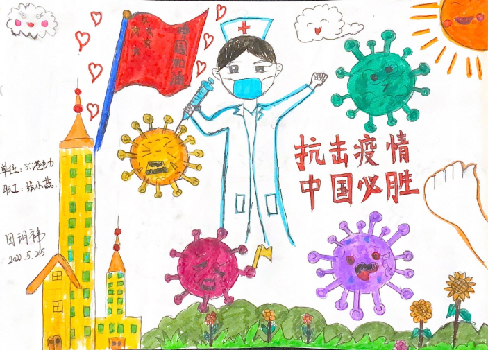 今年以来,面对严峻复杂的新冠肺炎疫情防控形势,广大医护人员、志愿者等无畏前行、逆风飞翔,护着人民群众的平安健康,人民群众也团结一心,众志成城,用心守护我们共同的家园。兴港萌娃们用稚嫩的手,缤纷的笔,一笔一划勾勒出“童心抗疫”的温馨画卷。