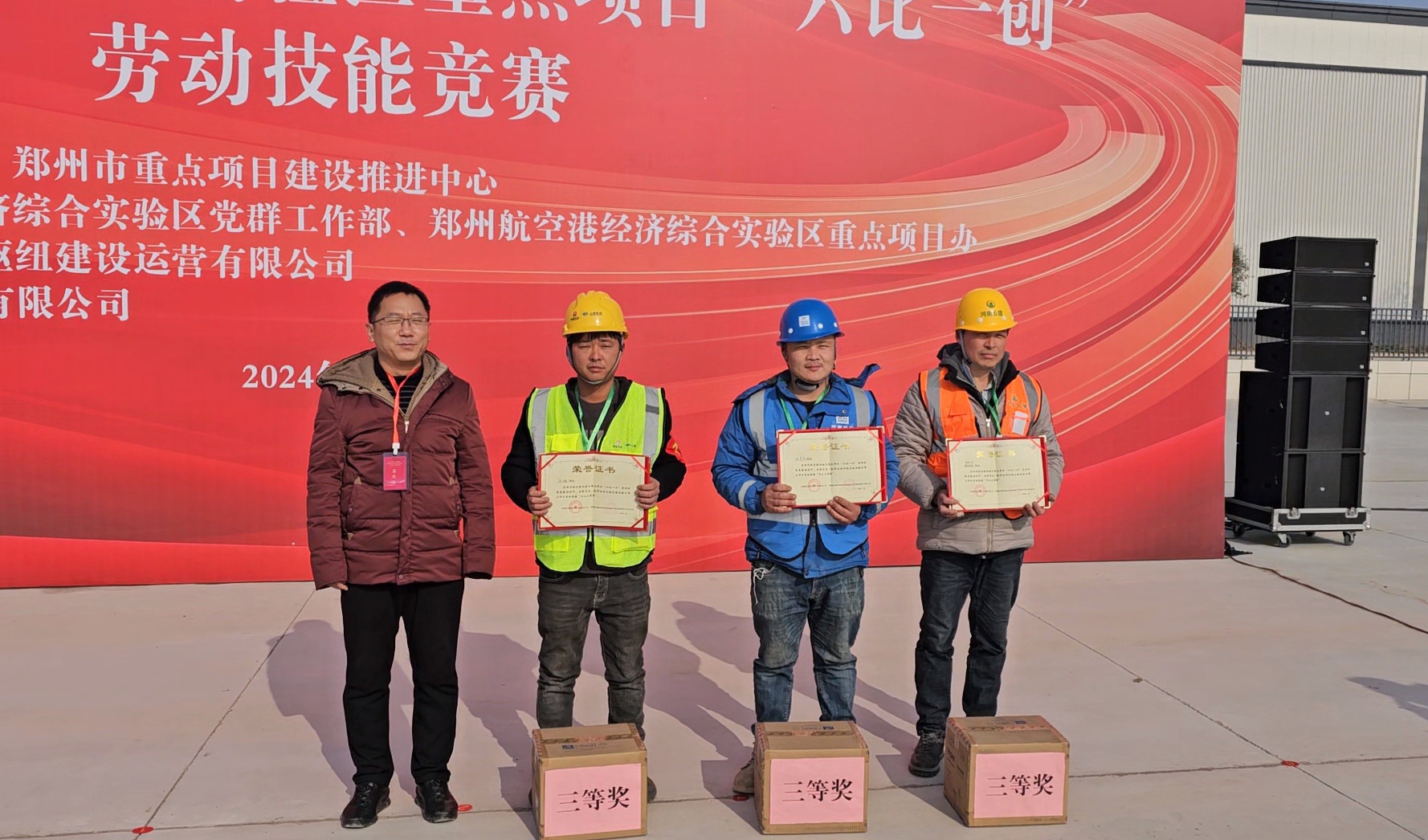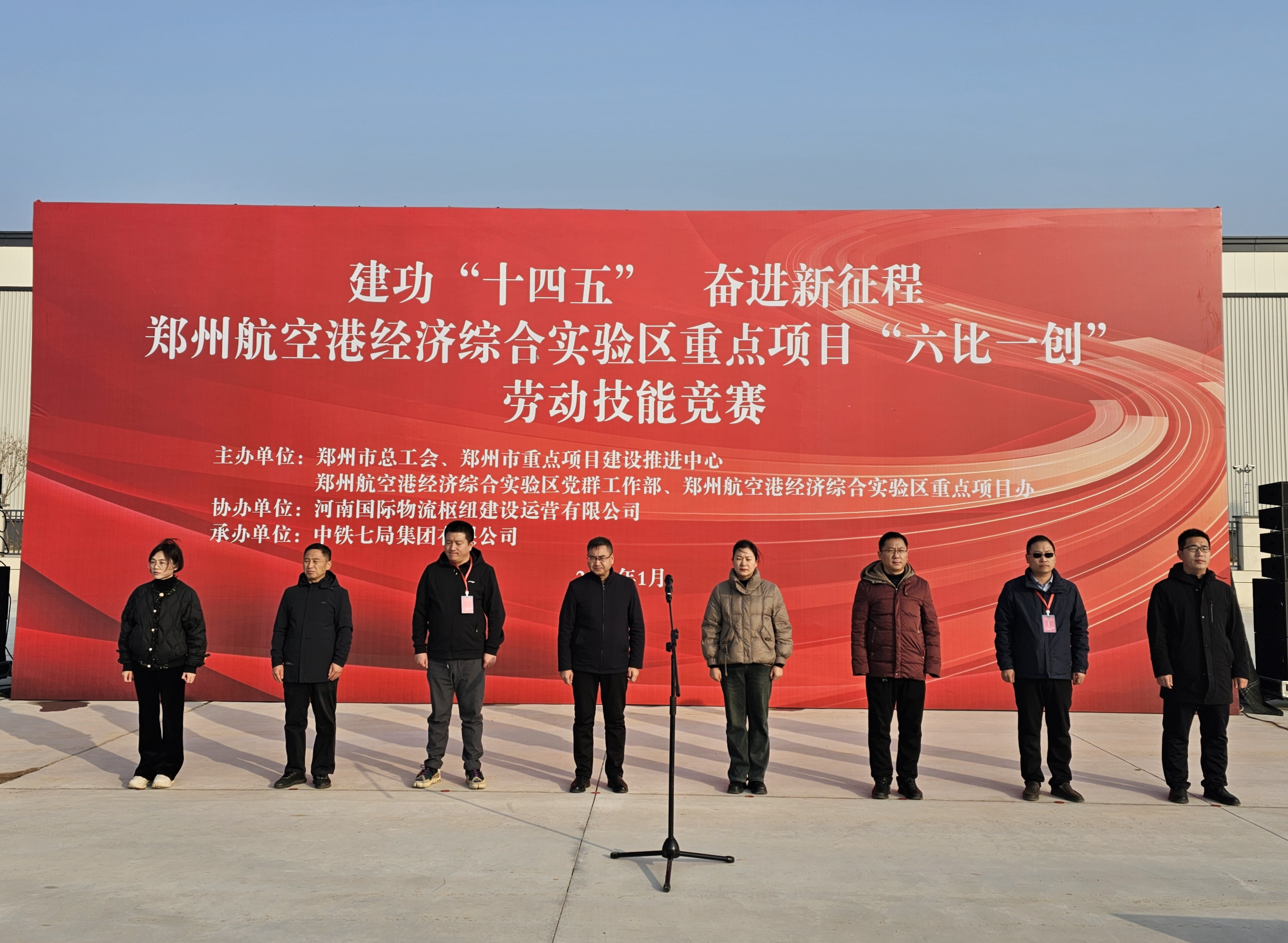 1月5日上午,郑州航空港区党群工作部和重点项目办在国际陆港西作业区联合举办郑州航空港经济综合实验区“六比一创”劳动技能竞赛活动。郑州市总工会、市重点项目建设推进中心等领导出席活动。来自中铁七局集团有限公司、中建三局集团有限公司、中国建筑第七工程局有限公司等11家项目单位50余名参赛选手参加。