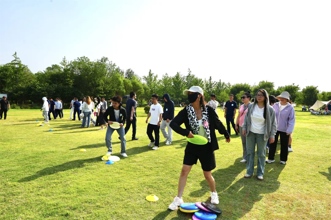 破冰互动游戏首先拉近了大家的距离,缓解了彼此的紧张情绪,随后,现场开展了考验默契的飞盘九宫格和飞盘投掷框等各种互动游戏,游戏妙趣横生,欢声笑语不断。