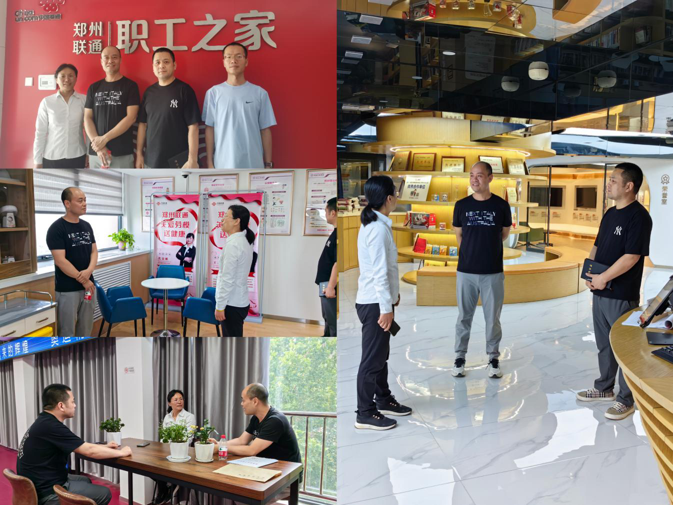 在中国联合网络通信有限公司郑州市分公司,通过实地查看、交流交谈等形式,了解并观摩企业职工之家建设内容和创建成果。在企业职工之家,5G健身房、瑜伽室、健康驿站、多功能图书阅览室、乒乓球室、心理咨询室、女职工关爱室等多项工会特色服务,处处彰显了工会和企业对职工的人文关怀。期间,公司工会副主席郭玉善就公司工会组织建设、经费管理、活动开展等情况进行了汇报,重点就维护职工利益、增强职工技能培训、加强职工关心关爱、促进安全生产、互助保障工作等方面与走访人员进行了深入交流。