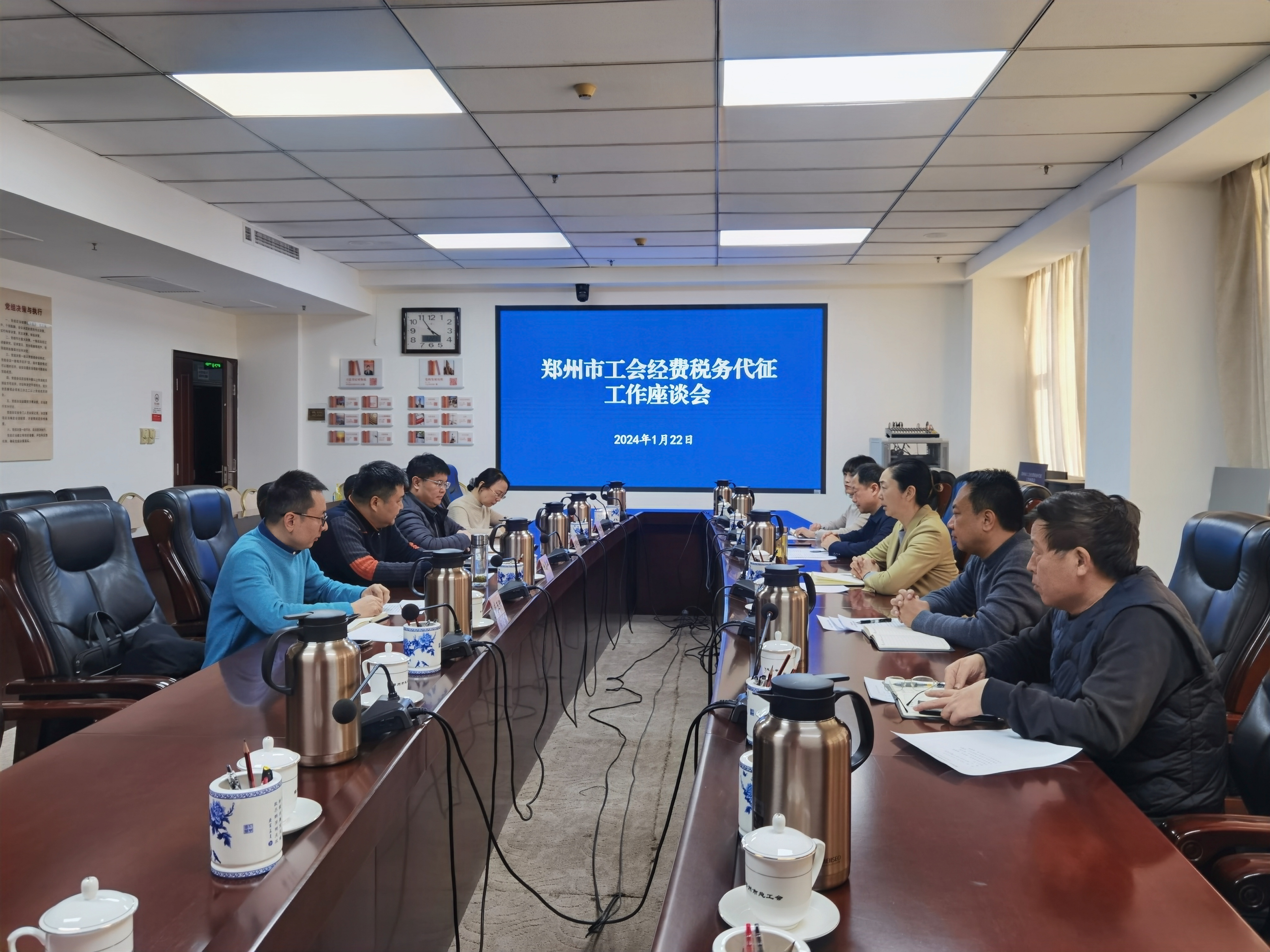 1月22日,郑州市总工会与市税务局在市总12楼会议室召开工会经费税务代征工作座谈会。会议通报了2023年工会经费代征工作有关情况,共同研究和解决代征工作中遇到的新问题,统筹安排下一阶段的工作。郑州市总工会党组书记、常务副主席王玉红,市税务局党委委员、副局长姚慧群,市总工会三级调研员张玉剑,出席会议并讲话。市总工会、市税务局相关业务部门人员参会。