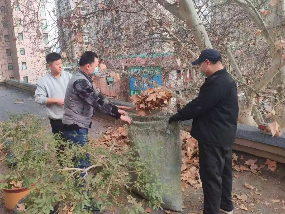 三月的风揉碎晨光,将“为人民服务”的星火播撒在春泥之上。早上八点半,物流普货院内老梧桐树下已是一片热火朝天,职工们准时集合,手持扫帚和簸箕,合力撑起麻袋,把地面及楼顶积存的落叶清扫得干干净净。场院里到处都是忙碌的 身影,有人用扫帚把落叶扫成堆,有人蹲在地上把碎叶拾进麻袋,还有人推着垃圾箱来回运送。麻袋渐次鼓起,承载的是满满的成就感和参与感。