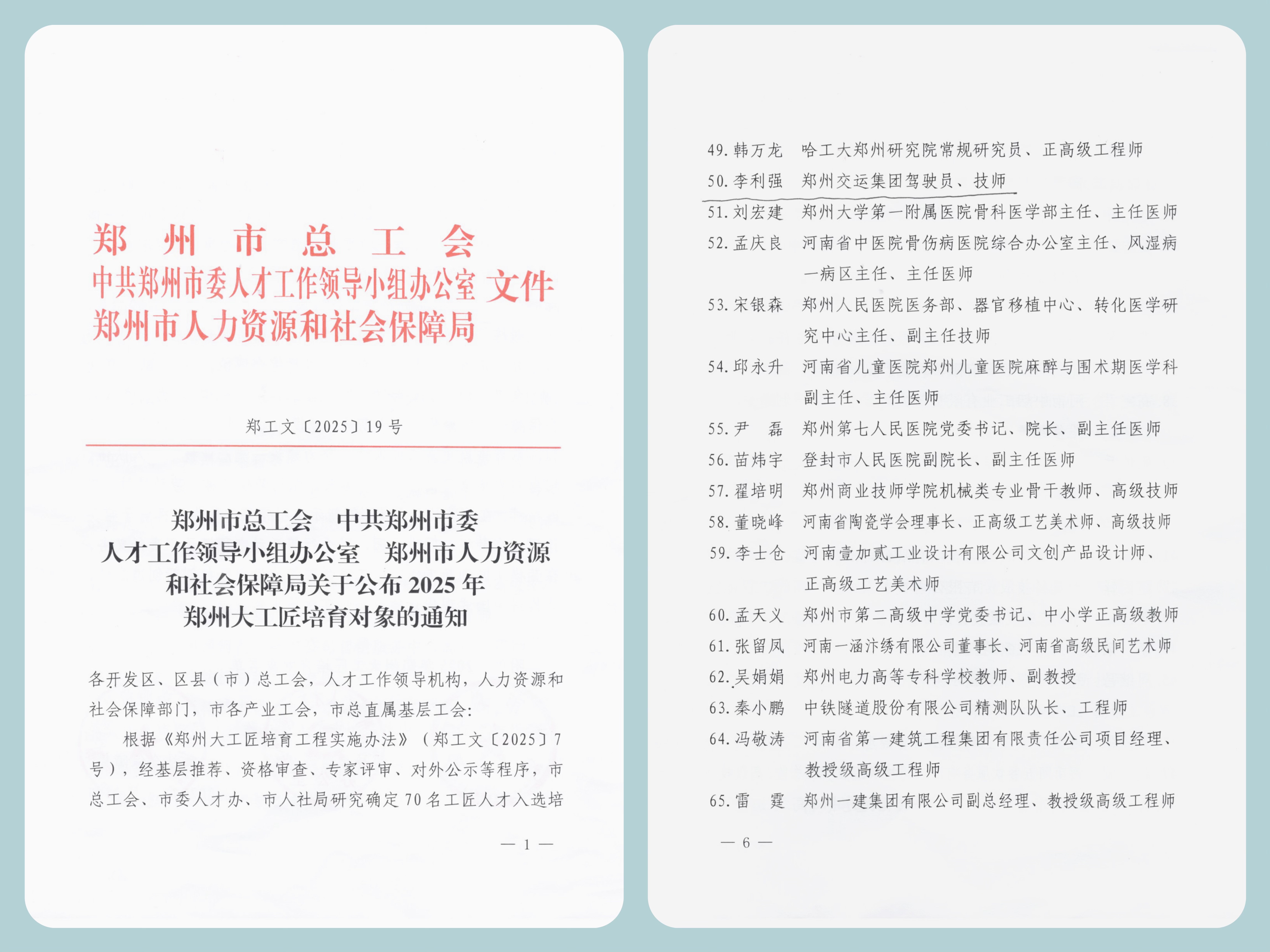 三十余载车轮滚滚,他以坚守与热爱书写不凡;百万公里安全无虞,他用责任与匠心铸就标杆。郑州交运集团客运一公司驾驶员李利强,凭借精湛的驾驶技术,高度的敬业精神和卓越的工作成绩,从众多候选人中脱颖而出,入选2025年郑州大工匠培育对象,成为行业闪耀榜样。