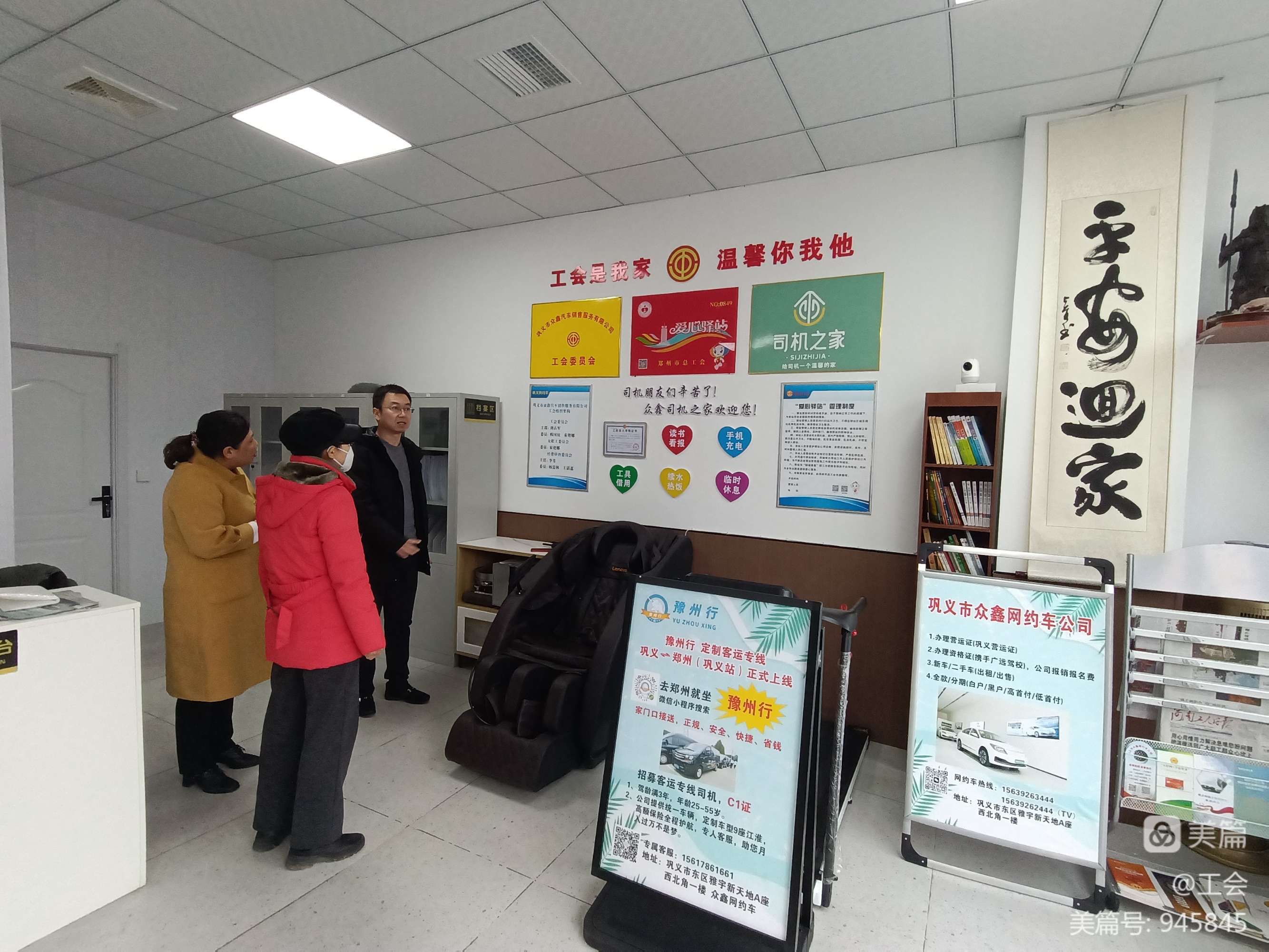 为迎接省总县级工会加强年专项工作的调研活动。2月10日下午,巩义市职工服务中心主任刘海涛带领市工会一行人到众鑫网约车、众城物流、饿了么实地调研司机之家、骑手之家及爱心驿站的建设运营情况。