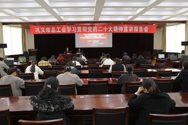 为深入学习宣传贯彻党的二十大精神,推动党的二十大精神在全体党员干部职工中走深走实。3月23日,市委宣讲团成员、市委党校高级讲师赵丛仙为巩义市总工会、团市委、市妇联集中宣讲党的二十大精神。