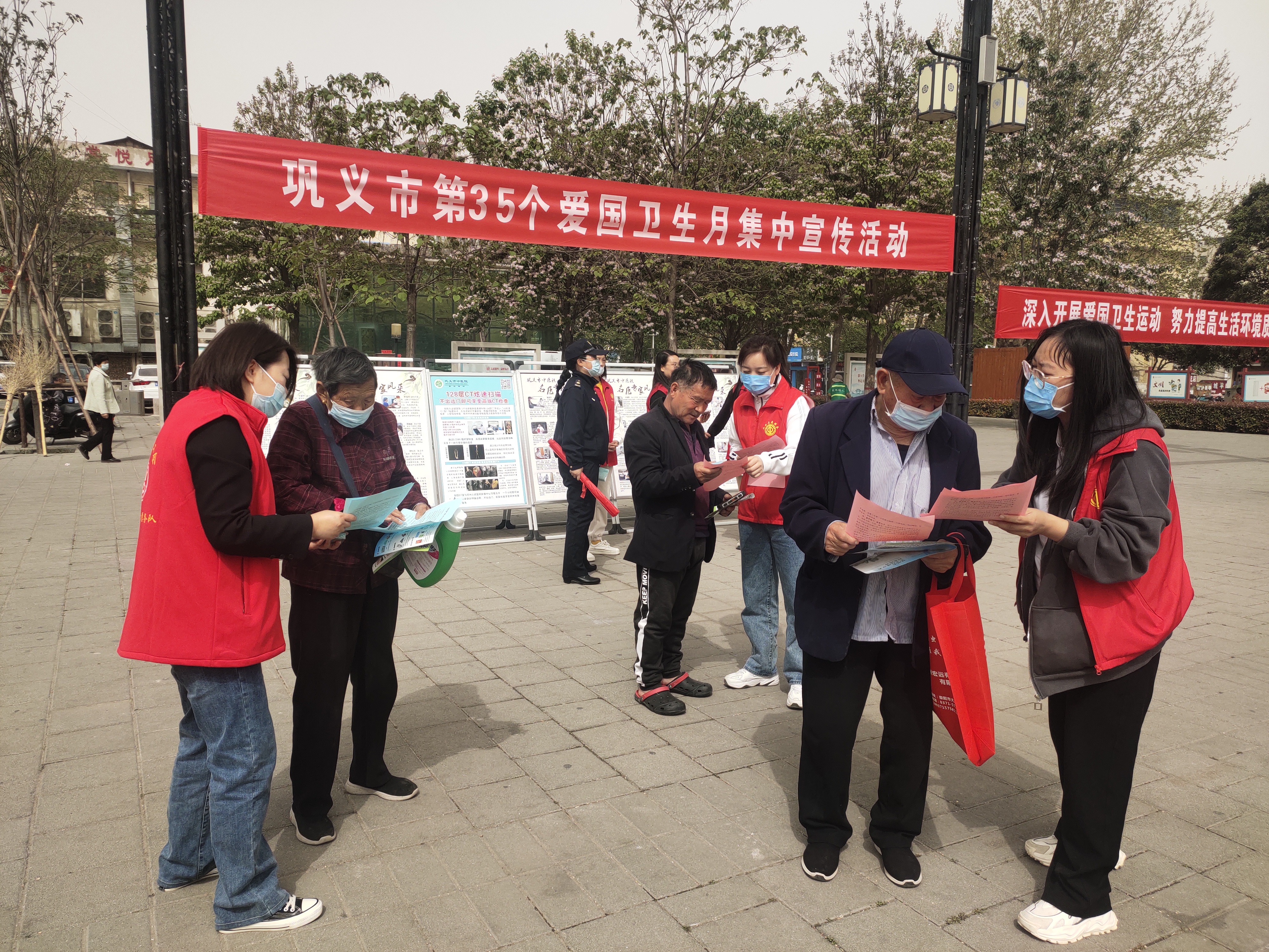 2023年4月是第35个爱国卫生月。为常态化巩固国家卫生城市创建成果,充分发挥爱国卫生运动组织优势和群众优势,引导群众培养“文明健康绿色环保”生活方式,进一步涵养文明健康社会风尚,建设卫生健康美丽宜居家园。4月12日,巩义市总工会组织干部职工志愿者在人民广场开展“宜居靓家园 健康新生活”爱国卫生月集中宣传活动。