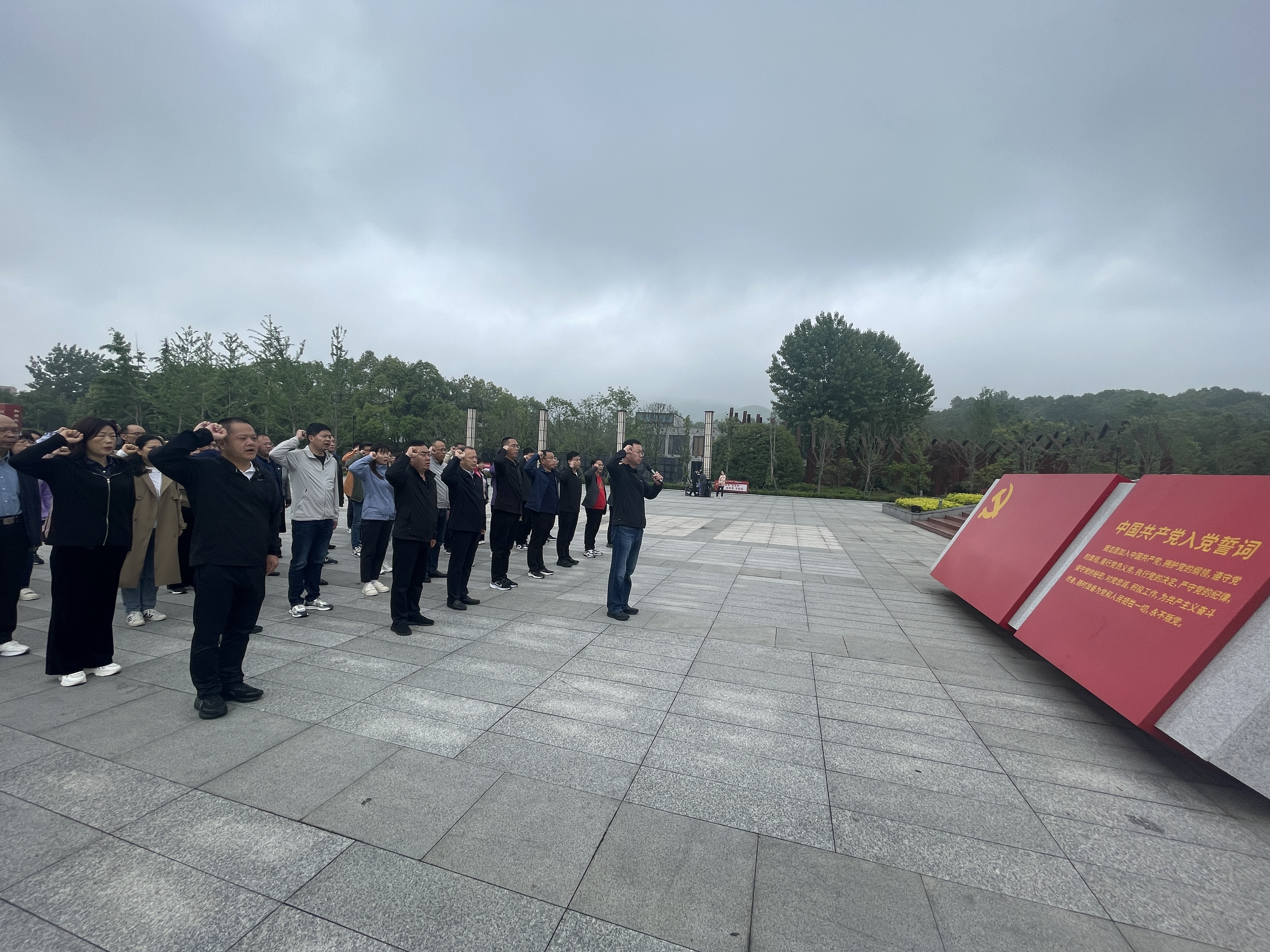 在讲解员的带领下,大家缓缓走到《忠魂曲》纪念雕塑前,全体人员在周书记的带领下向烈士敬献花篮,随后,全体党员面对党旗举起右手,重温了入党誓词,回顾了入党初心。