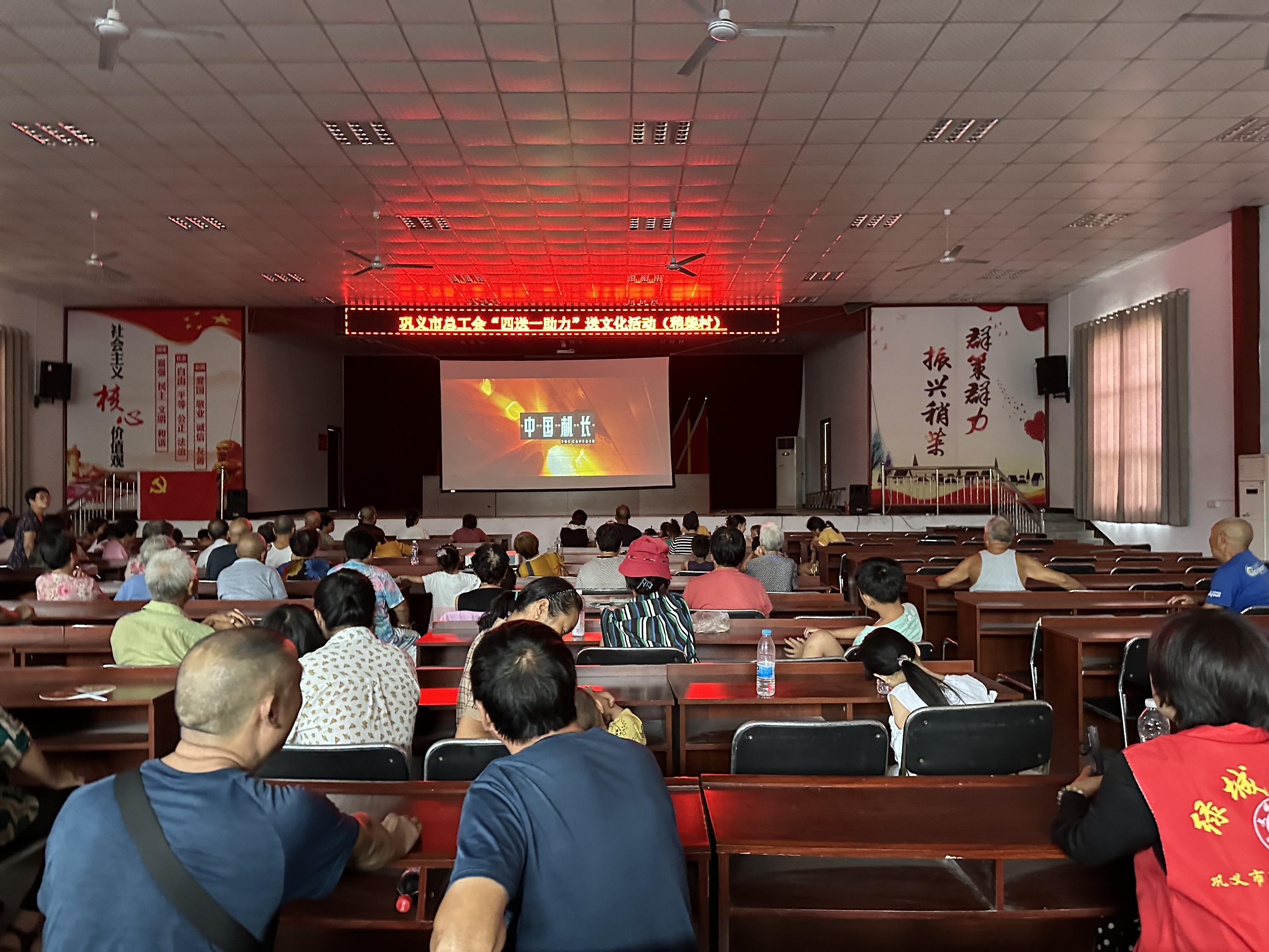 为进一步深化农村精神文明建设,更好助力全面推进乡村振兴、加快农业农村现代化,丰富群众的文化生活。8月3日,市总工会到结对帮创稍柴村开展“四送一助力”送文化观影活动,职工服务中心党支部书记孙真真带队参加活动。