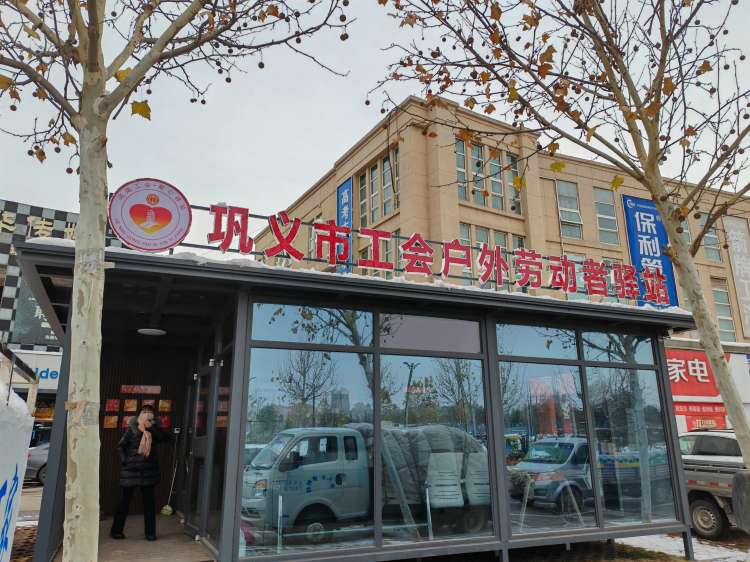 近几天,巩义市持续低温雨雪冰冻天气,但位于杜甫路街道万洋商贸城东门的市总工会爱心驿站则是相对温暖。此驿站建于2023年7月份,这间二十多平方米的驿站里,配备了饮水机、微波炉、冰箱、电视机、手机充电排插等生活设施,应急物品柜里还存放着工作服、雨衣、应急医药箱等物品,免费为户外工作者提供休息、热饭、饮水等服务。