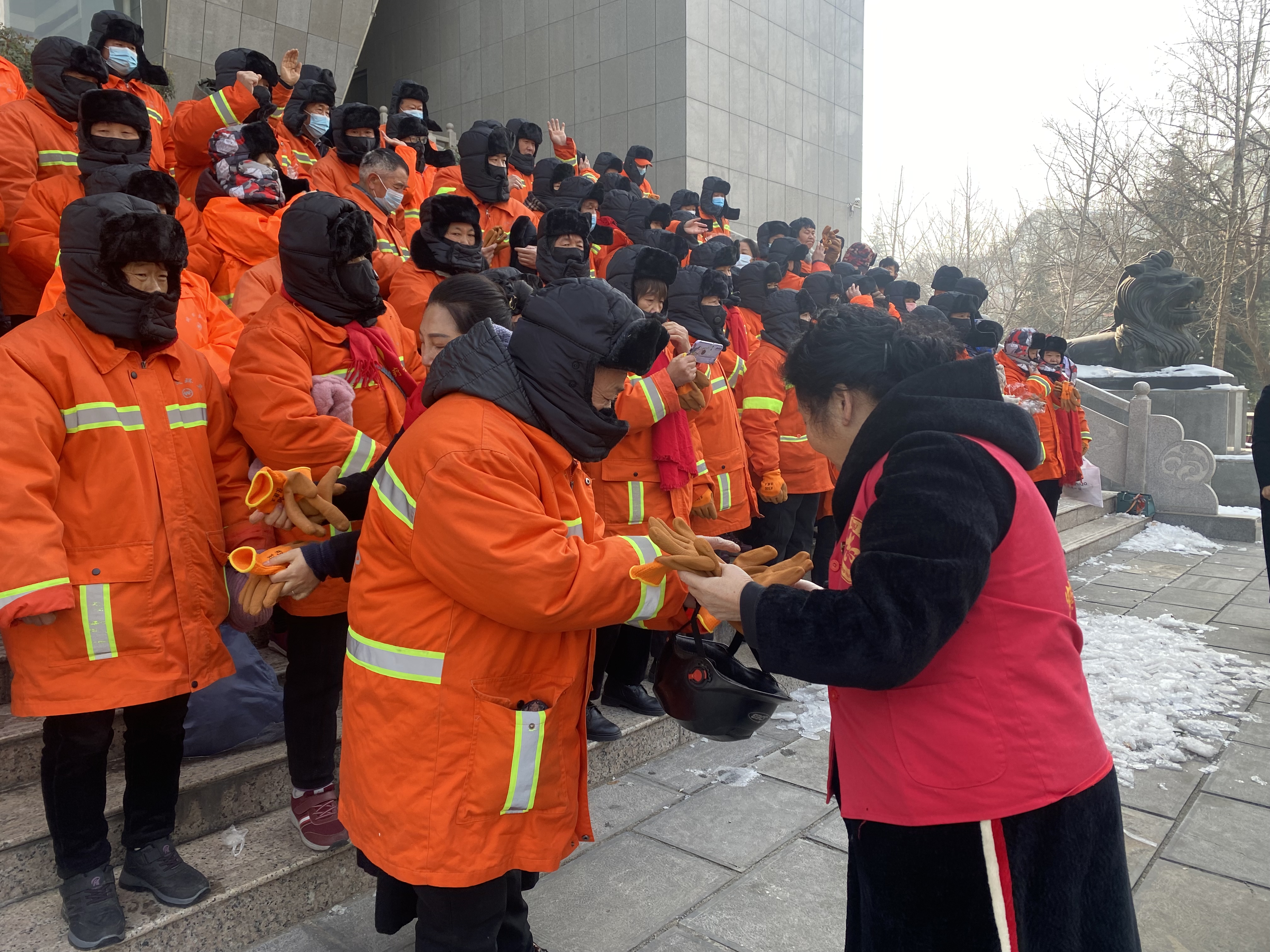 活动现场,爱心志愿者们把精心准备的手套、帽子、口罩等御寒保暖用品送到一个个环卫工人手中,感谢他们不顾寒冷、坚守岗位,为城市的清洁美丽无私奉献、辛勤劳动。