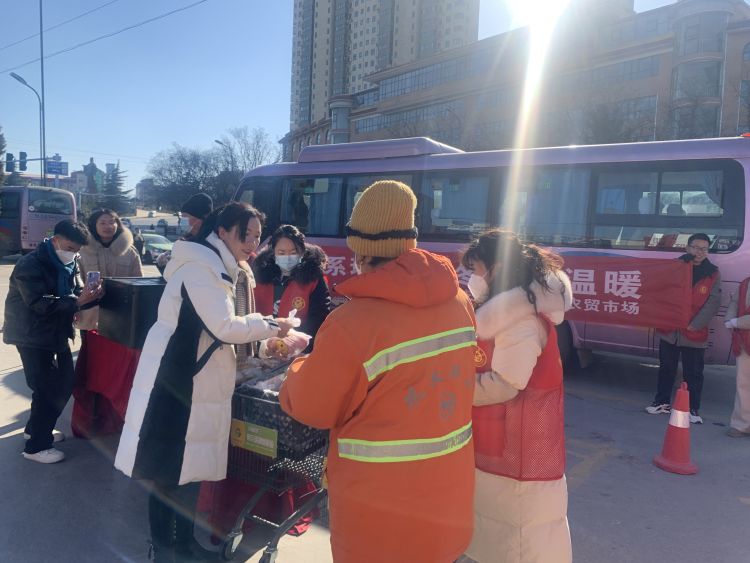 寒冬已至,环卫工人依然在寒风中坚守一线,奔波在街道的各个角落,为表达对环卫工人辛苦付出的感谢,切实把关心关怀送到环卫工人的心坎上,12月21日,杜甫路街道和平路社区工会联合辖区中高新智慧农贸市场工会开展“情系环卫工,冬至送温暖”志愿服务活动。