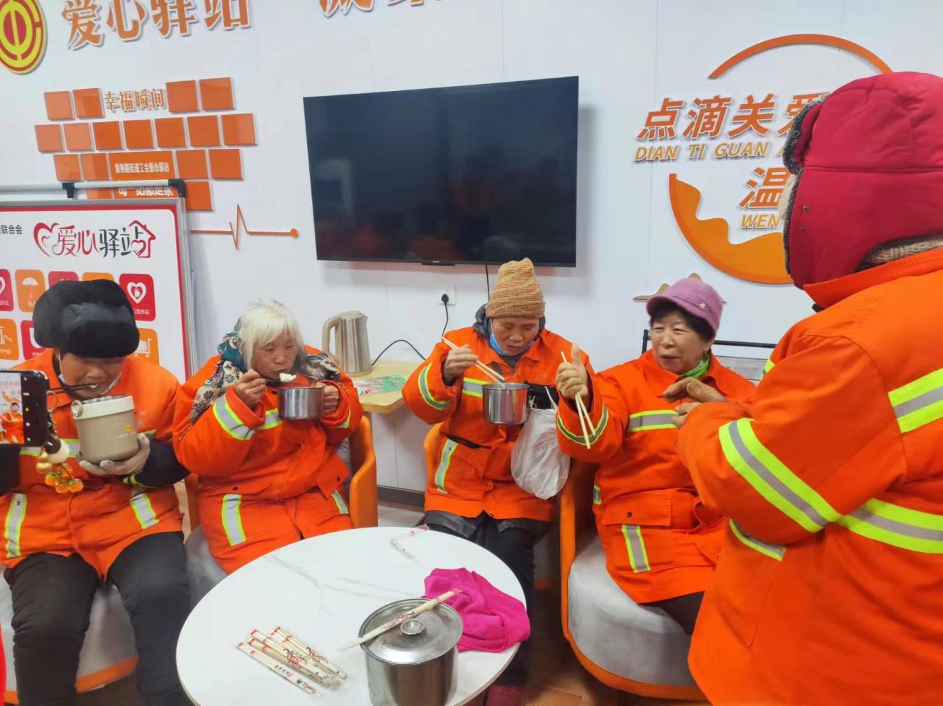 “给你们点赞!”“吃了饺子,身上暖呼呼的,心里更暖和!”“饺子好吃,这么冷的天你们还想着我们这些环卫工人,我们真的打心底感受到关怀和温暖,这是我吃过的最好吃的饺子!”“感谢对我们的关心关爱,恁冷的天儿,天寒地冻哩,天都没亮都来给我们送饺子、煮饺子,让我们在冬至吃让热乎乎的饺子,真是为俺环卫工人着想,我们可感动了!”12月21日一大早紫荆路街道豪布斯卡户外劳动者驿站热闹非凡。
