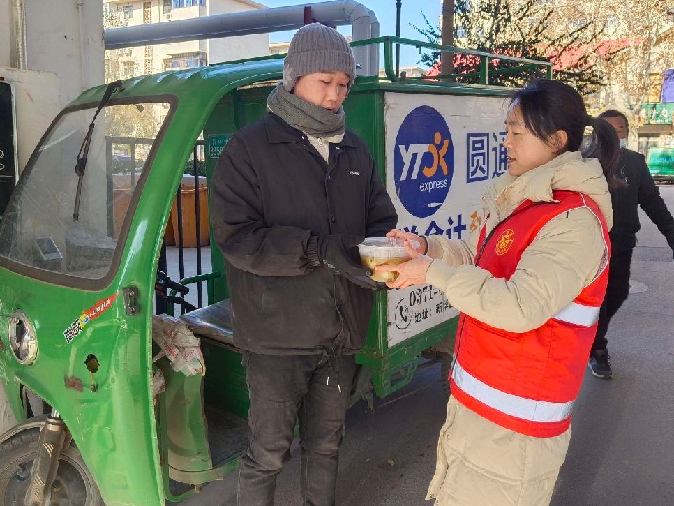人间小团圆,冬至大如年。冬至这一天从古至今一直延续着“吃水饺”这个习俗。为喜迎这个传统文化节日,新华路街道货场路社区爱心驿站情暖辖区独居老人、快递小哥,在冬至当天为他们送上暖暖的水饺,使在这个寒冷的冬天,和他们一起度过一个温馨、快乐的时光。