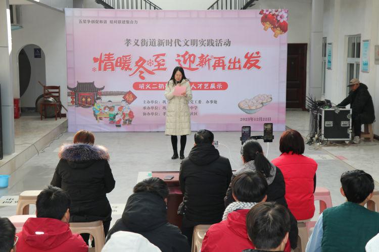 冬至时节,寒气凛冽,天地封冻。社区与巩义市第二初级中学结对联建,通过线上与线下相结合的文艺演出,展示了孝义文化,为现场和线上群众送上一场别开生面的“文化盛宴”。