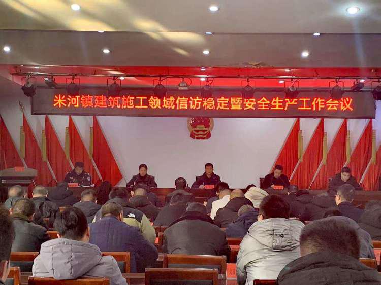 为抓紧抓实米河镇岁末年初信访稳定和安全生产工作,统筹好发展和安全,为人民群众安居乐业祥和过节创造良好环境,2023年12月31日上午,米河镇组织召开建筑施工领域信访稳定暨安全生产工作会议。米河镇全体班子成员和各项目方负责人共80余人参加会议,镇党委副书记、政法委员张浩哲主持会议。