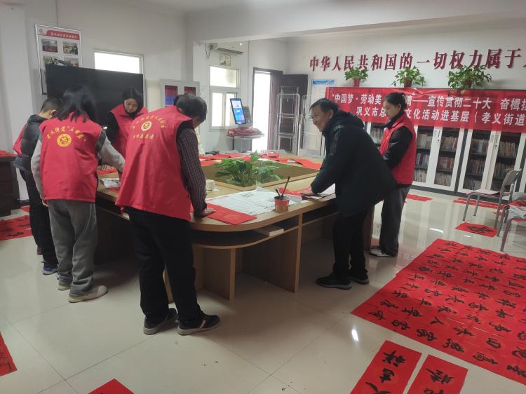 新春佳节将至,到处一片喜迎新年的欢乐气氛。贴春联,送祝福,传递情。孝义街道工会联合会携手火车站社区,邀请书法名家来社区大院义写春联,送去祝福。