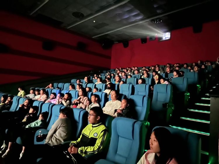 9点40分两个影厅已经满员。锦华社区组织辖区家长和孩子在电影院观看一部名为《天降大任》影片,影片介绍了有着非凡力量的“天选之子”猴和“幸运小龙”蒲牢这一对废柴活宝组合,与人类女孩努瓦一起组成了“不靠谱”冒险小队,开启一场欢脱治愈的奇幻冒险。