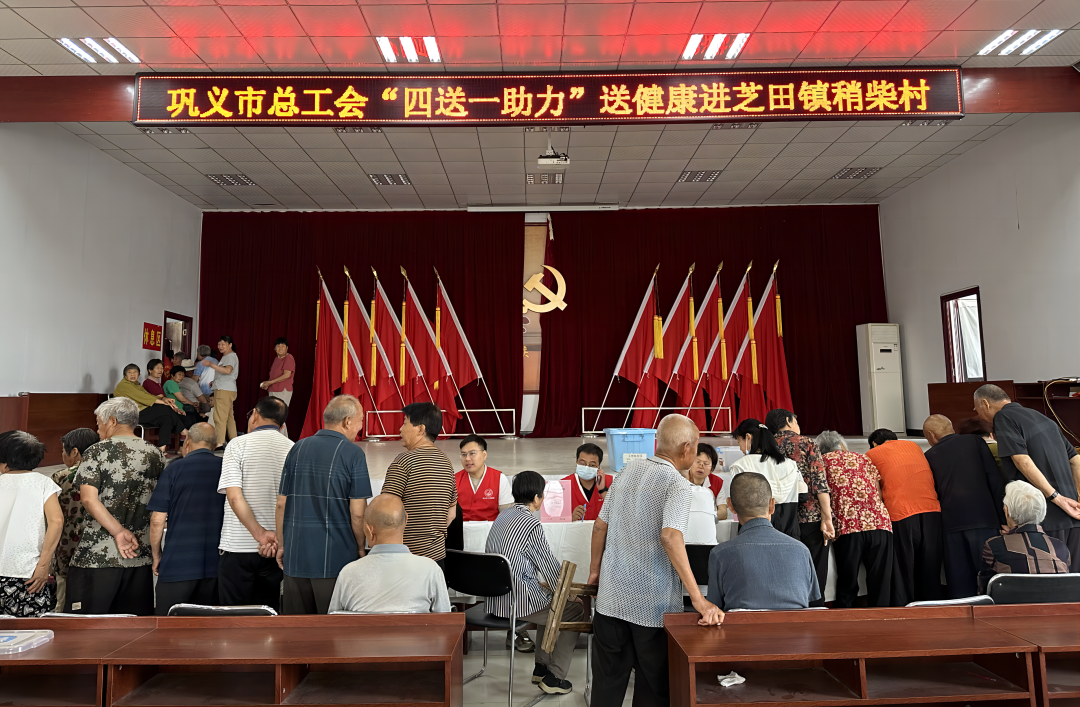5月17日,巩义市总工会联合市人民医院前往芝田镇稍柴村开展“四送一助力”送健康活动。