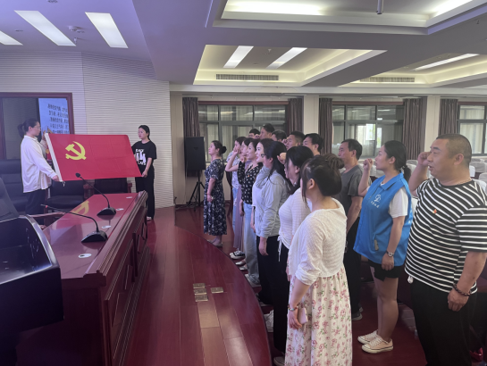 重温誓词忆初心。面对着鲜红的党旗,党员们佩戴党徽,高举右手,用铿锵有力的誓言重温了一次入党宣誓。不同的时空,同样的誓言,缅怀了革命先烈,表达了初心如磐,砥砺前行的坚强决心。