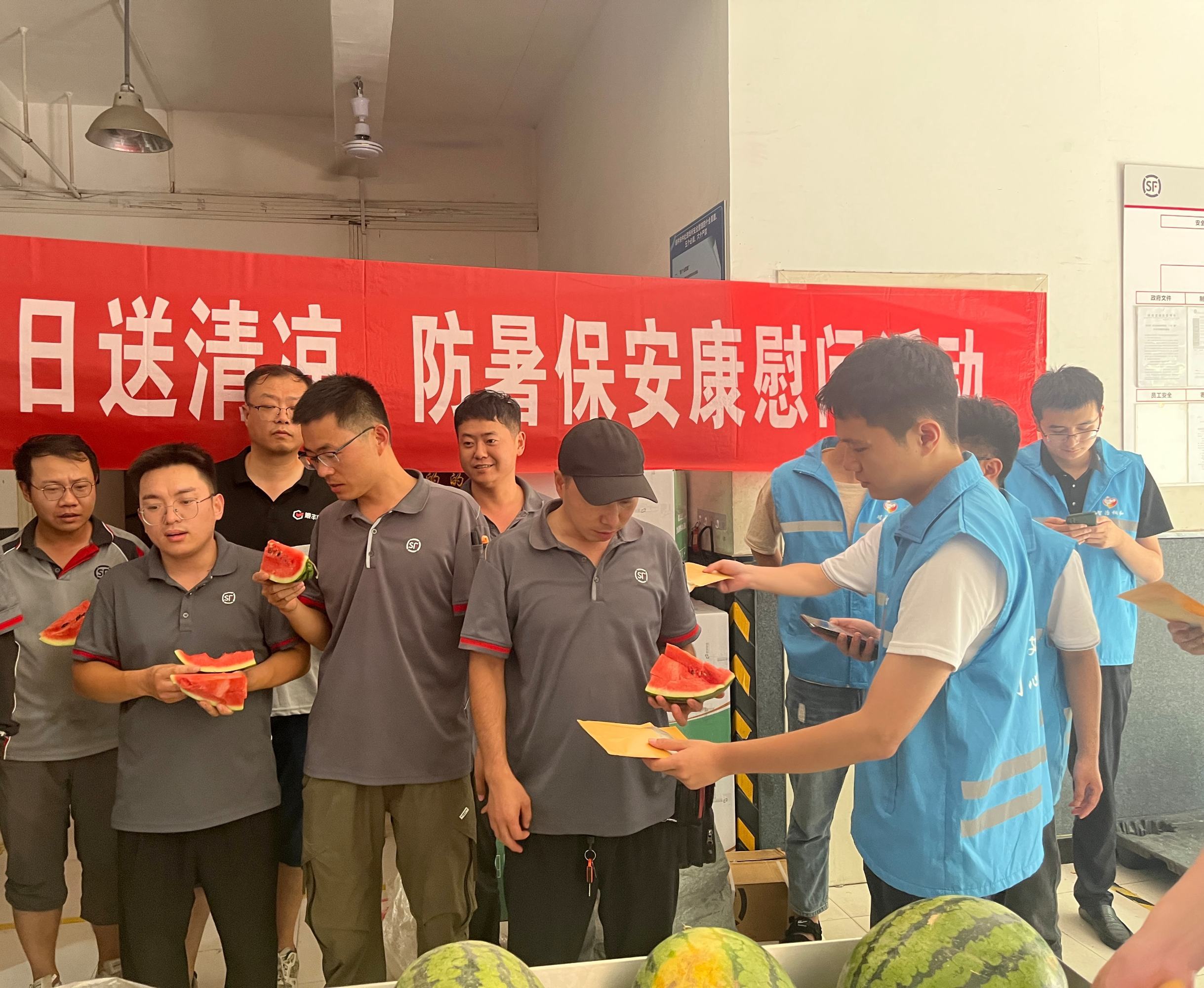 炎炎夏日,许多在基层一线的户外劳动者头顶烈日,辛勤奋战在岗位上,为辖区的和谐发展贡献自己的力量。7月4日,巩义市新华路街道桐和社区工会准备了西瓜、凉茶、绿豆水等防暑降温物资,为城市美容师和快递员们送上清凉问候,让他们感受到政府和工会组织的诚挚关怀。