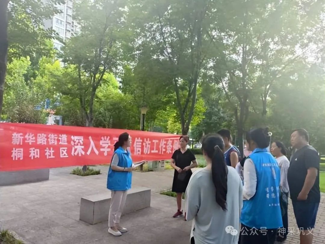 此次活动,桐和社区通过线上+线下方式给居民宣传《信访工作条例》知识。线上,桐和社区划分9个微网格,网格长在居民微信群推送信访有关的政策和法规知识,引导群众依法依规逐级信访。线下,社区网格员深入辖区楼院、公园开展入户走访宣传活动,通过发放宣传彩页,悬挂横幅、面对面讲解等方式,向居民讲解“如何维护信访人的合法权益”“规范信访行为”等相关知识,并耐心解答居民疑问,向居民介绍《信访工作条例》的相关细则,了解信访的基本程序和方式方法,引导信访群众依法理性表达诉求,理性表达诉求,营造办事依法、遇事找法、解决问题用法、化解矛盾靠法的良好环境,自觉维护社会秩序。
