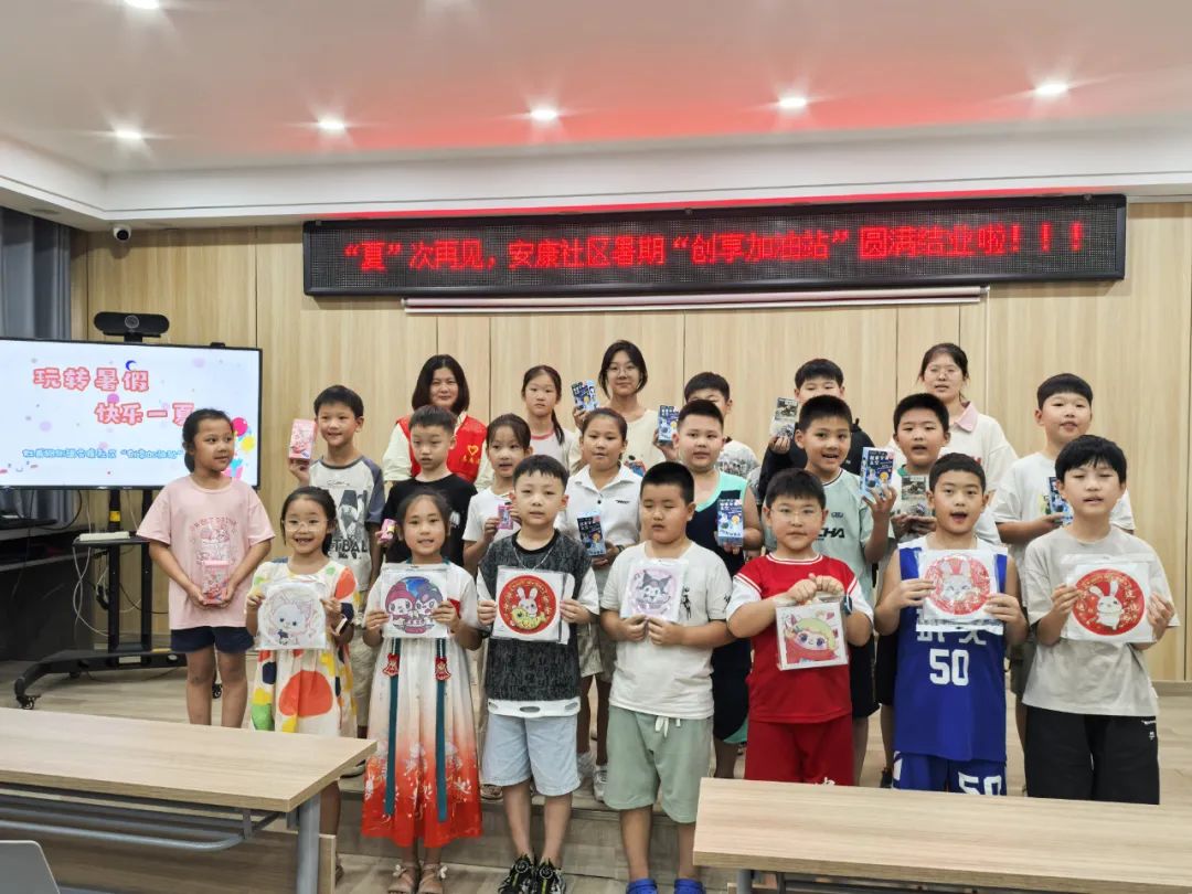 安康社区工会“创享加油站”暑期班于7月10日开班,在为期20天的活动中,社区工作人员和志愿者们以美育为主题,采取“看护+教育”相结合的方式,给孩子们安排了丰富多彩的课程及活动。活动包括传统文化、艺术体验、安全教育和红色精神等多个方面,让孩子们在轻松愉快的氛围中感悟爱国主义精神、礼仪文化、非遗文化,学习安全知识、防溺水常识、反诈骗知识等。孩子们在“创享加油站”暑期班里学习新知识,结交新朋友,获得新技能,分享新收获,度过了一个快乐“有料”的暑期。