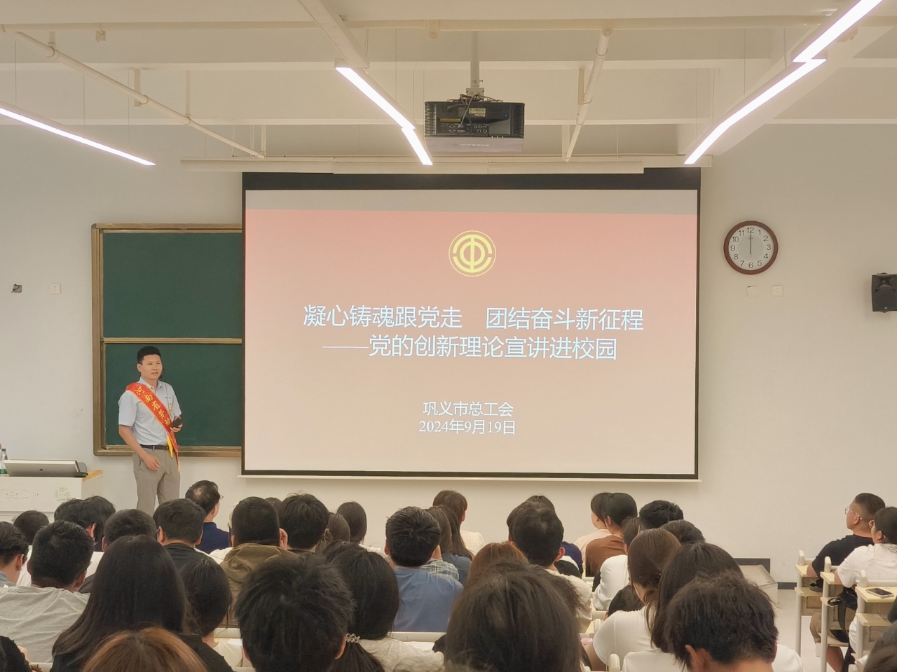 为深入学习贯彻党的创新理论,激发广大师生的爱国热情和奋斗精神,为实现中华民族伟大复兴的中国梦贡献力量。9月19日,巩义市总工会邀请河南省劳动模范、巩义市泛锐熠辉复合材料有限公司集成产品部部长、首席工程师、机械制造及自动化专业博士潘广镇到郑州城建学院进行党的创新理论宣讲进校园活动,学院机械工程系200余名师生参加。