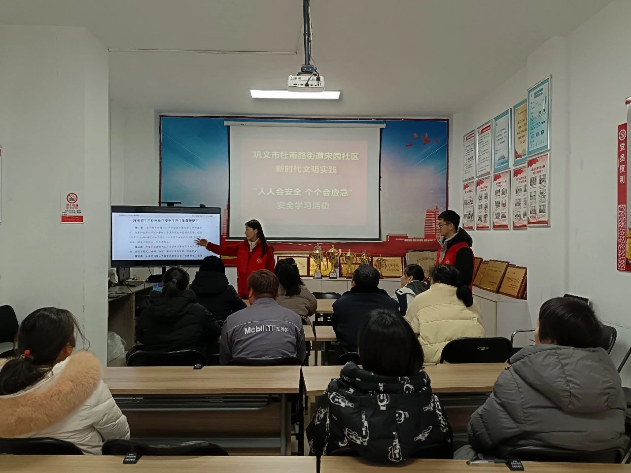 为了保障节后商户复工复产的安全,近日,巩义市杜甫路街道宋园社区工会组织商户在社区新时代文明实践站观看“人人会安全 个个会应急”直播活动,社区网格员深入辖区商户面对面提醒商户加强安全生产工作。