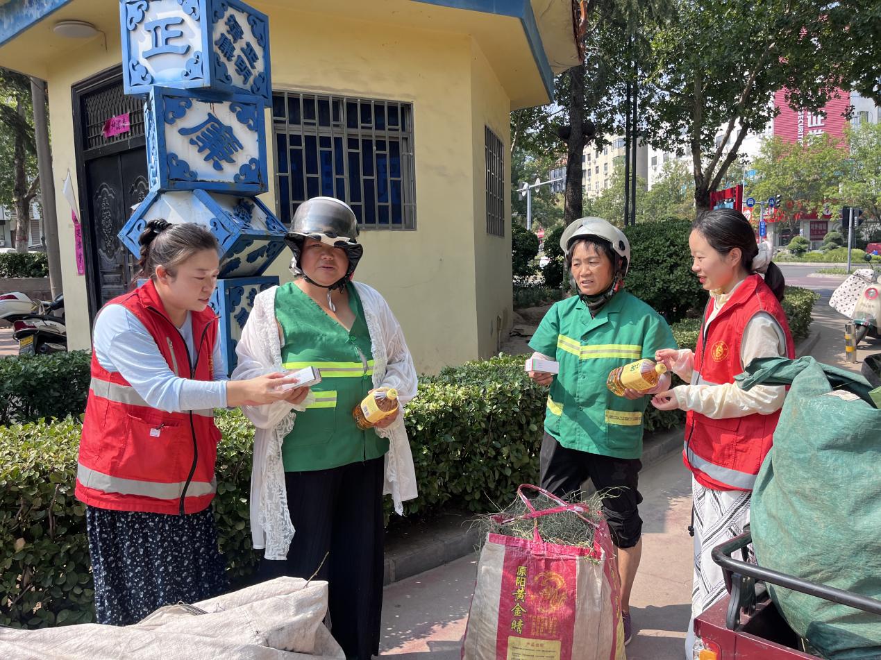 活动聚焦夏季露天作业的环卫工人、快递小哥、外卖骑手等易受高温“烤”验的群体。活动当天,社区工作人员和志愿者们早早备好了饱含心意的清凉物资:解渴消暑的菊花茶饮、预防中暑的藿香正气水,还有实用的清凉油等。他们顶着烈日,穿梭在社区的街头巷尾、公园等,只为将这份“清凉礼包”亲手送到每一位汗流浃背的劳动者手中。