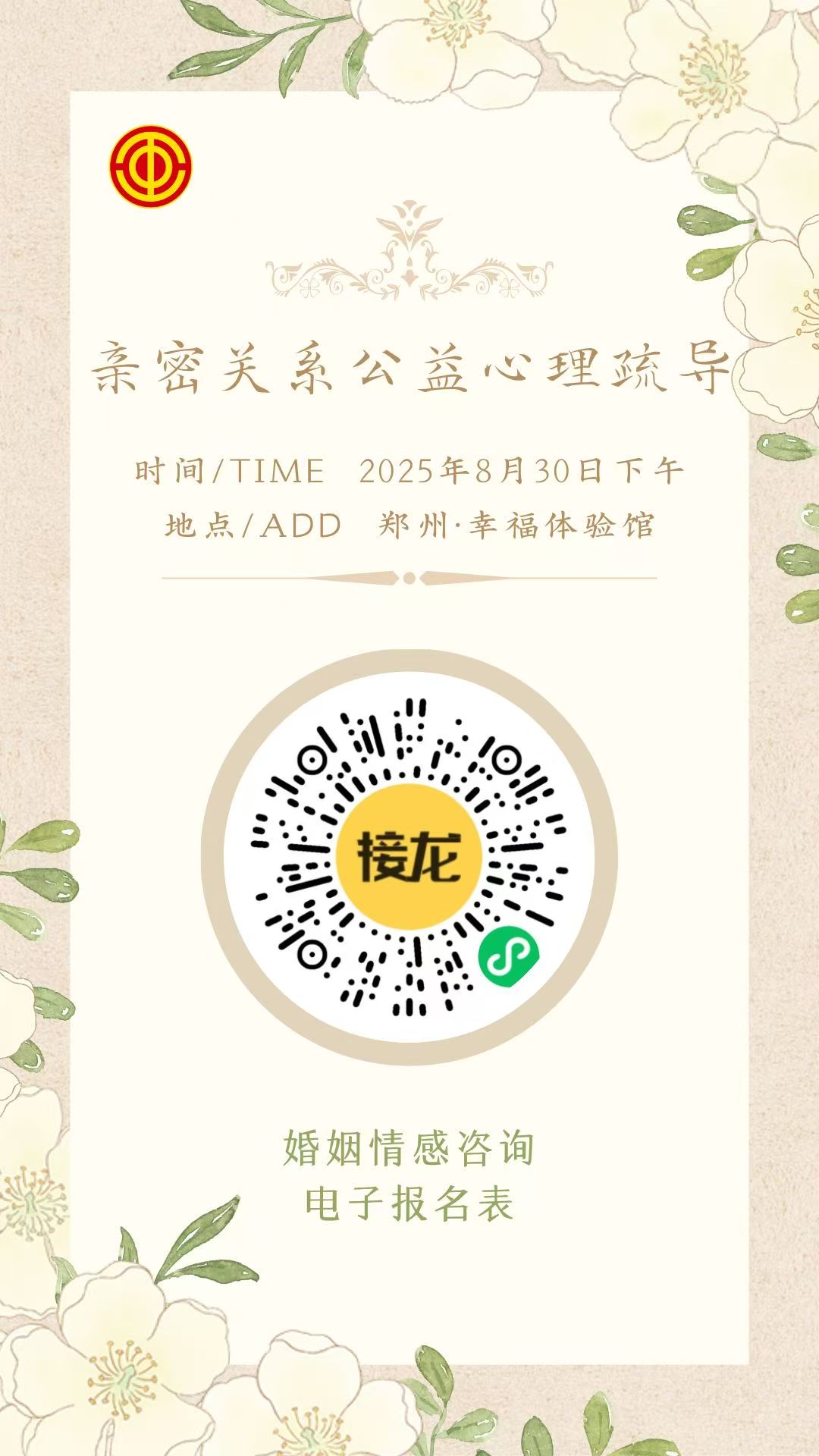 二、八月特别策划:七夕浪漫启航,郑州市总工会为爱护航!8月30日下午亲密关系公益咨询,婚姻情感咨询师一对一解惑,助您与伴侣共筑甜蜜,喜迎浪漫七夕,让爱更加长久!