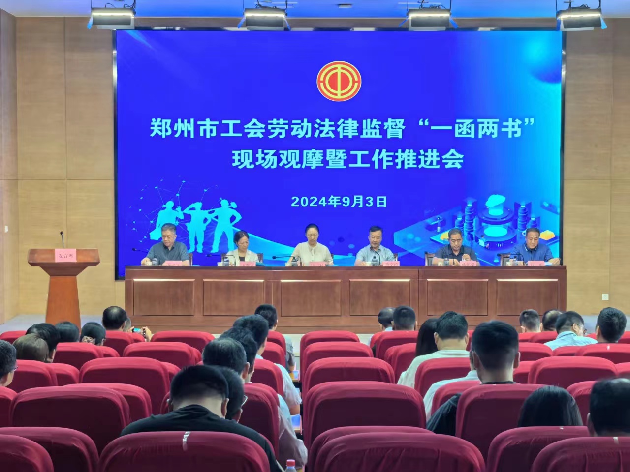 9月3日,郑州市召开全市工会推行劳动法律监督“一函两书”工作现场观摩暨推进会,梳理总结前一阶段我市工会劳动法律监督“一函两书”工作推进情况,交流经验、分析问题,研究部署下一阶段工作。郑州市总工会党组书记、常务副主席王玉红,市法院、检察院、人社局、司法局分管领导,各县(市、区)总工会的有关领导和业务科室负责人共计80余人参加现场会。