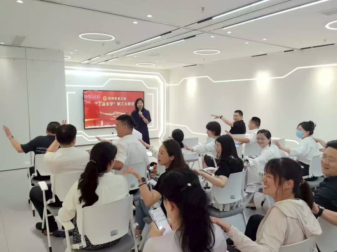 7月22日,郑州市总工会“工益乐学”职工大讲堂走进职工文体中心二楼幸福体验馆,为华泰证券河南分公司职工们带来一场主题为“发现性格优势,提升职场幸福力”的员工压力管理专题培训,旨在帮助职工缓解工作压力,提升职场幸福感。