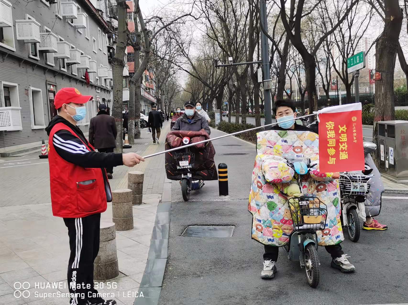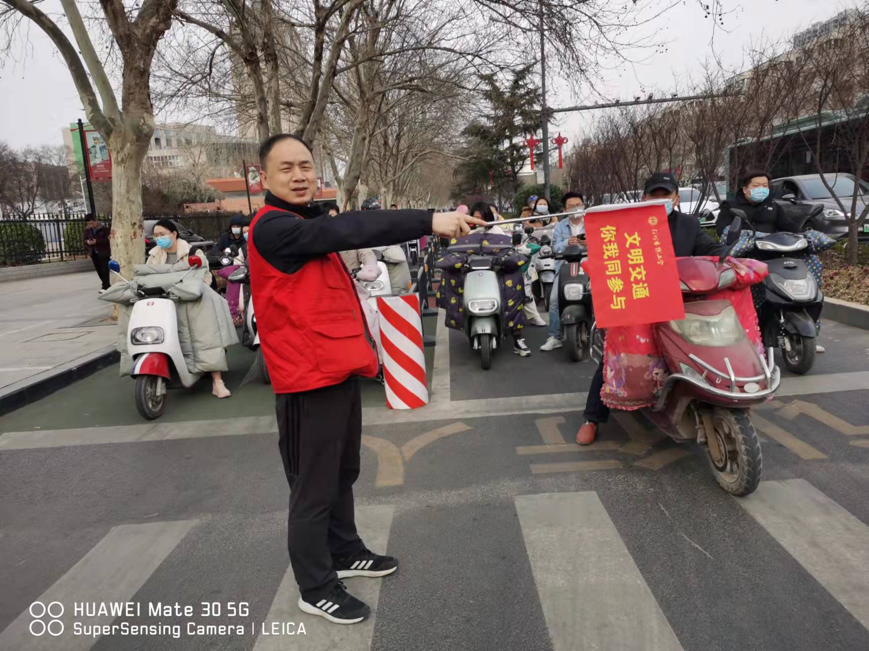 市总工会结合实际,组织志愿者对机动车乱停乱放、非机动车不按规定行驶、行人横穿马路、闯红灯等不文明行为及时进行劝阻,倡导市民群众遵守交通规则、引导和促进文明行为养成,传播文明交通理念,营造良好交通环境。