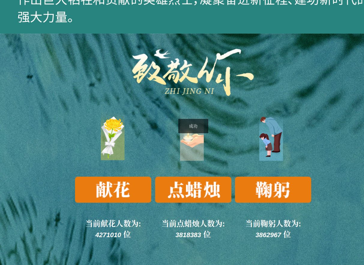 网上祭奠活动,有效利用了现代科技,弘扬了我们的传统文化,了解到更多的英雄烈士事迹,增强了爱国之情,“网上祭英烈”活动是一场爱国主义教育和感恩教育。通过此次活动,使我们的思想得到了一次洗礼,进一步增强了继承和弘扬优秀传统文化的自觉性,同时引导大家珍惜来之不易的和平生活,铭记烈士的丰功伟绩,把缅怀之情化为工作的动力,为祖国的新征程贡献自己的力量!
