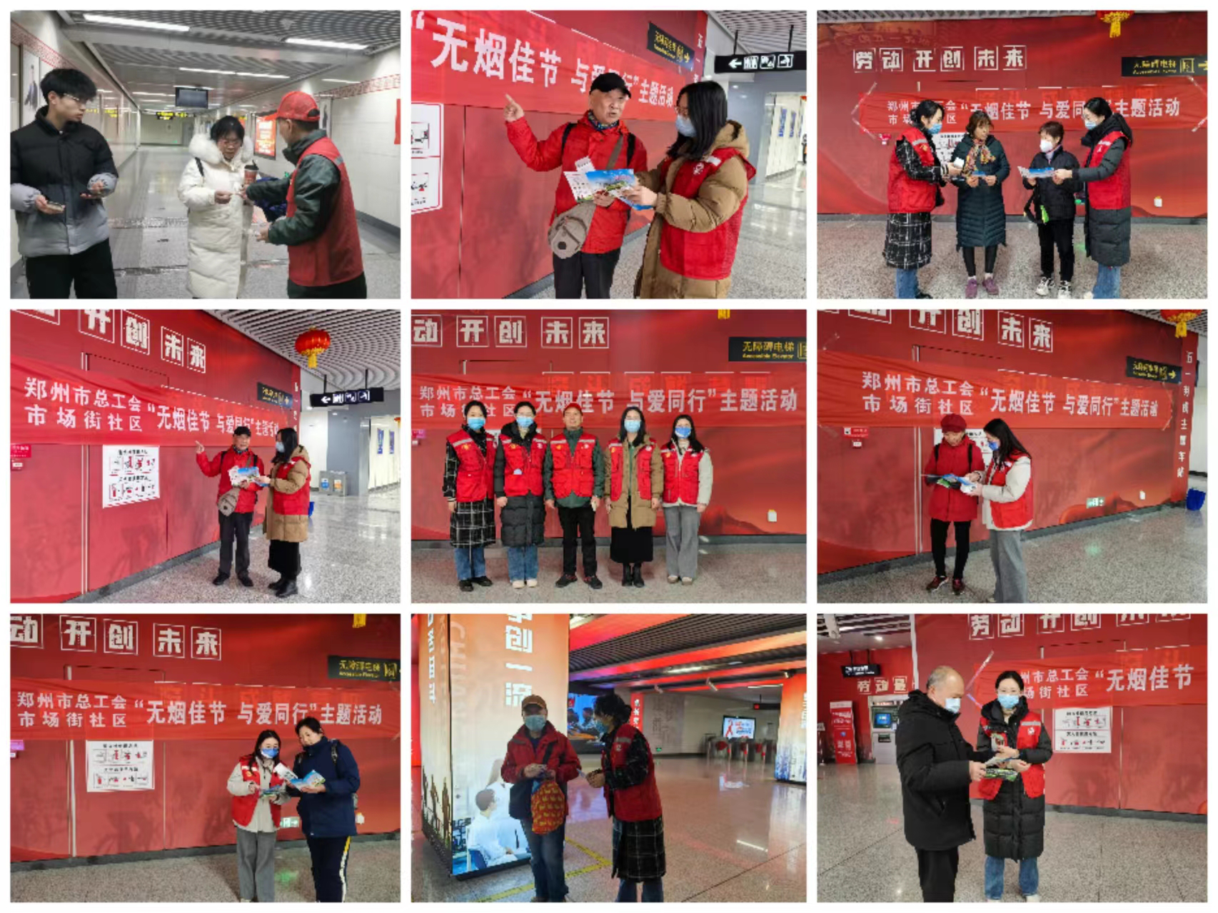 为营造新春佳节无烟氛围,倡导文明过年,践行健康生活方式,2月19日下午,郑州市总工会在五一公园地铁站组织开展“无烟佳节 与爱同行”主题活动。