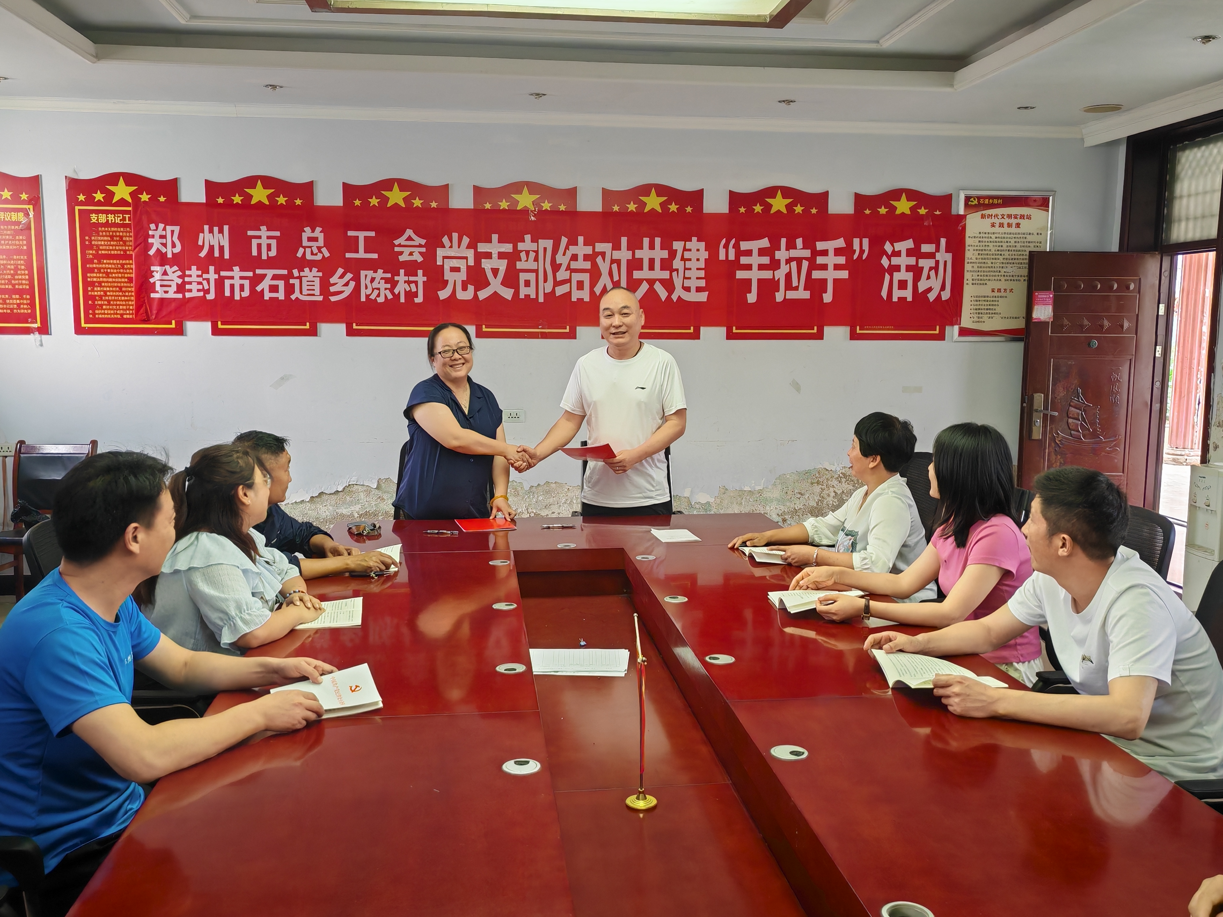 为充分发挥党建引领作用,构建“资源共享、优势互补、相互促进、共同提升”的党建工作新局面,6月5日,郑州市总工会第三党支部前往登封市石道乡陈村,与驻村工作队开展了党支部结对共建“手拉手”活动。